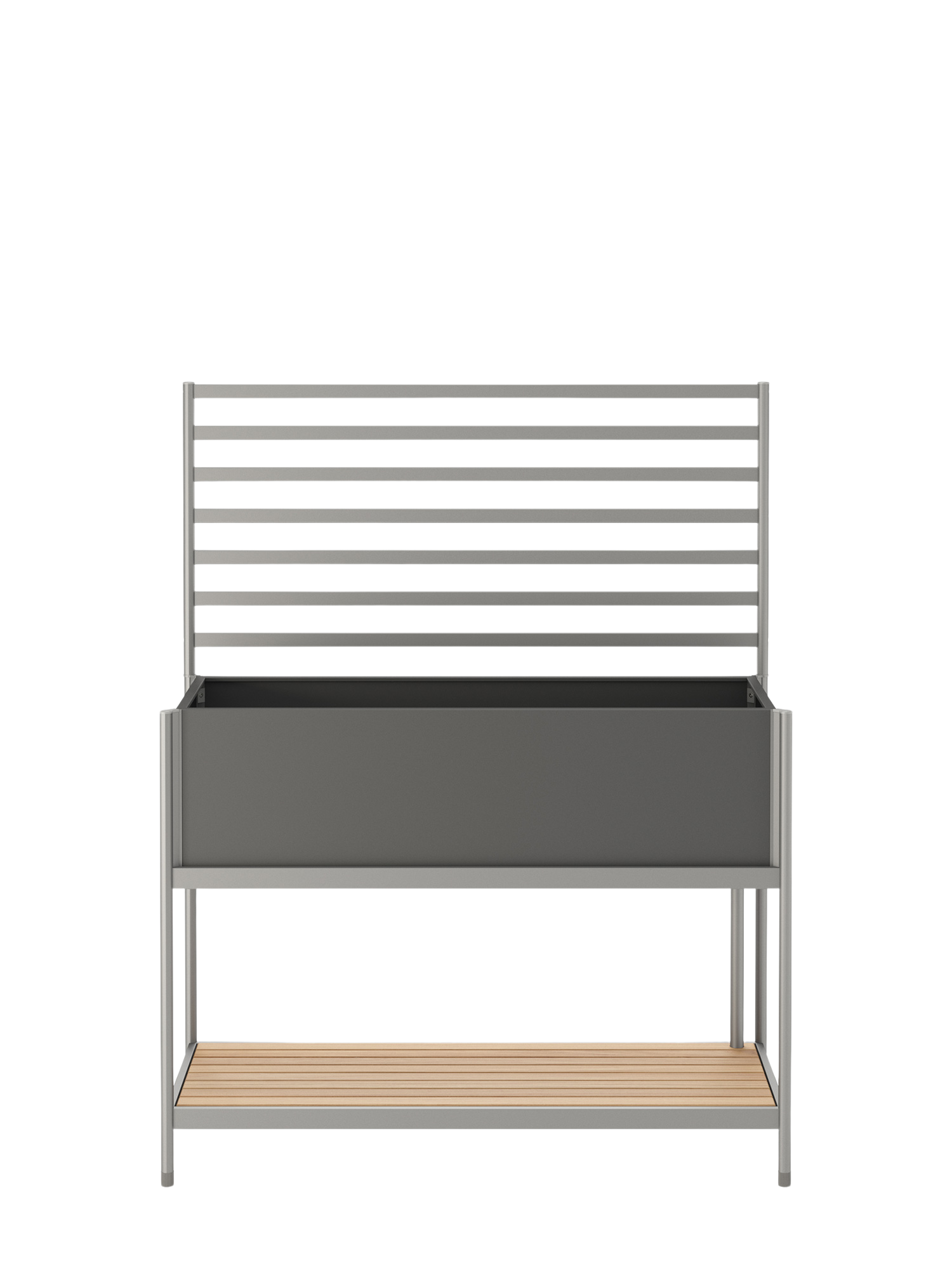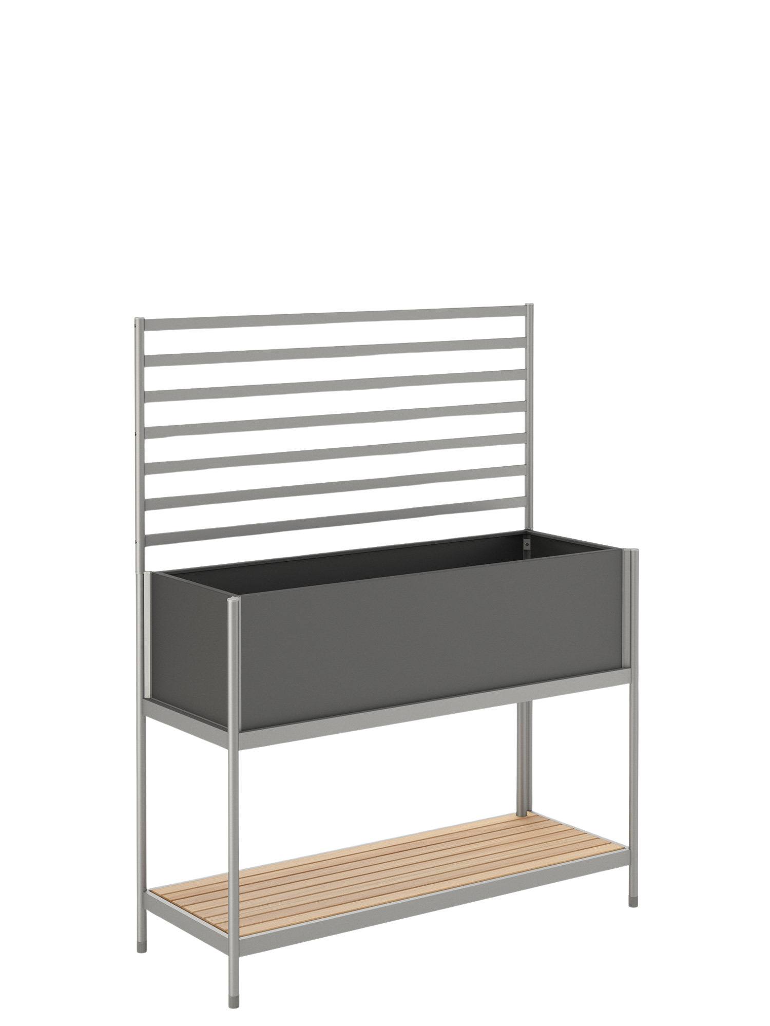 Gärtnern in der VertikalenFür Klettergemüse wie Gurken, Zucchini und Tomaten oder blühende Rankpflanzen wie Clematis, Duftwicke und Passionsblume eignet sich die zusätzlich zu bestellende Rankwand aus eloxiertem Aluminium als perfekte Basis. Sie wird einfach auf die hinteren Holme des Rana Hochbeets gesteckt. Mit ihren stabilen Streben stützt sie halbhohe Kletterpflanzen und fungiert zugleich als begrünter Raumteiler und natürlicher Sichtschutz.