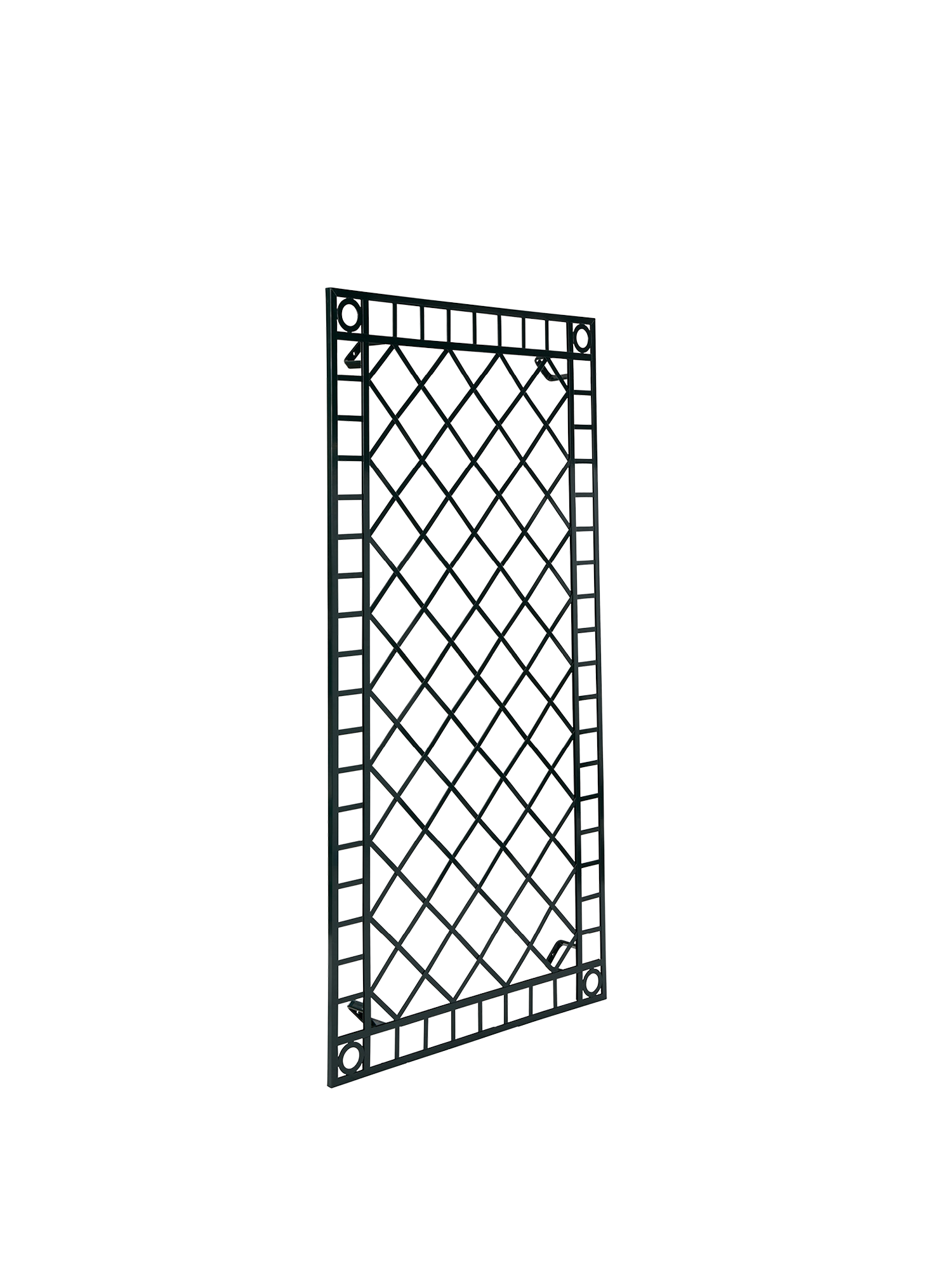 Edle Kletterhilfe für Pflanzen zur Verschönerung Ihres Mauerwerks. Die Rankwand besteht aus wetterfestem Aluminium, das dunkelgrün pulverbeschichtet ist. Starke Halterungen am Rücken geben den Abstand zum Mauerwerk vor, so dass die Pflanzen auch Luft finden. Die Rankwände sind in zwei Breiten erhältlich. Bitte beachten Sie, dass die Montage nicht durch unsere Vertragsspedition ausgeführt werden kann.