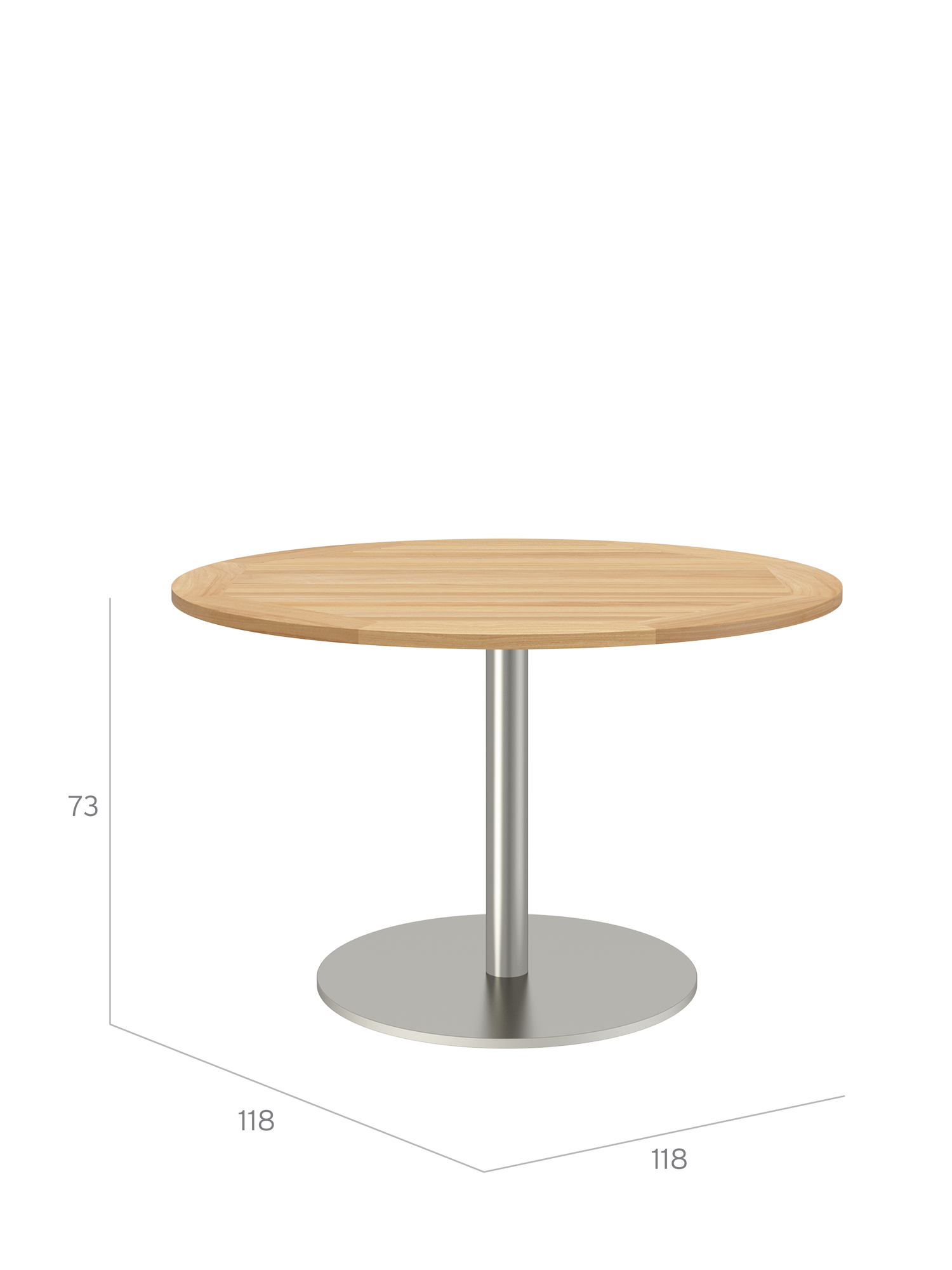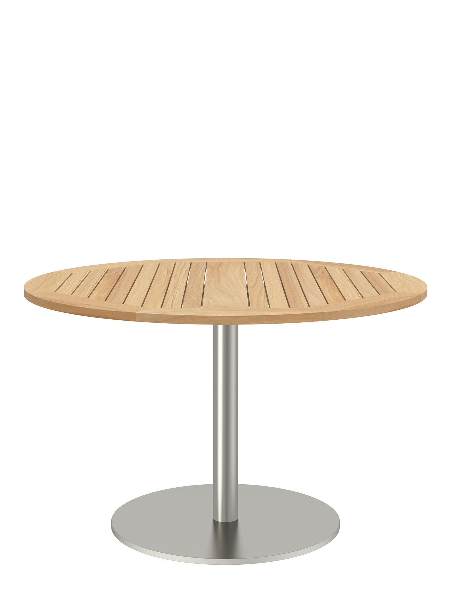 Ronda Mittelfusstisch Edelstahl rund 120 Tischplatte Teak