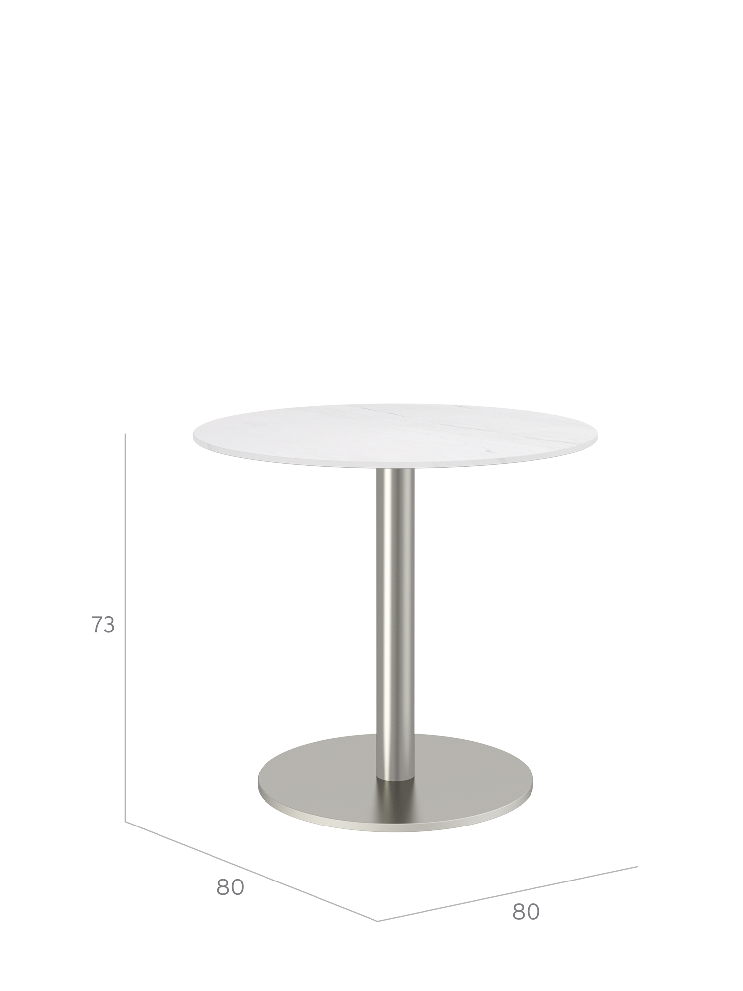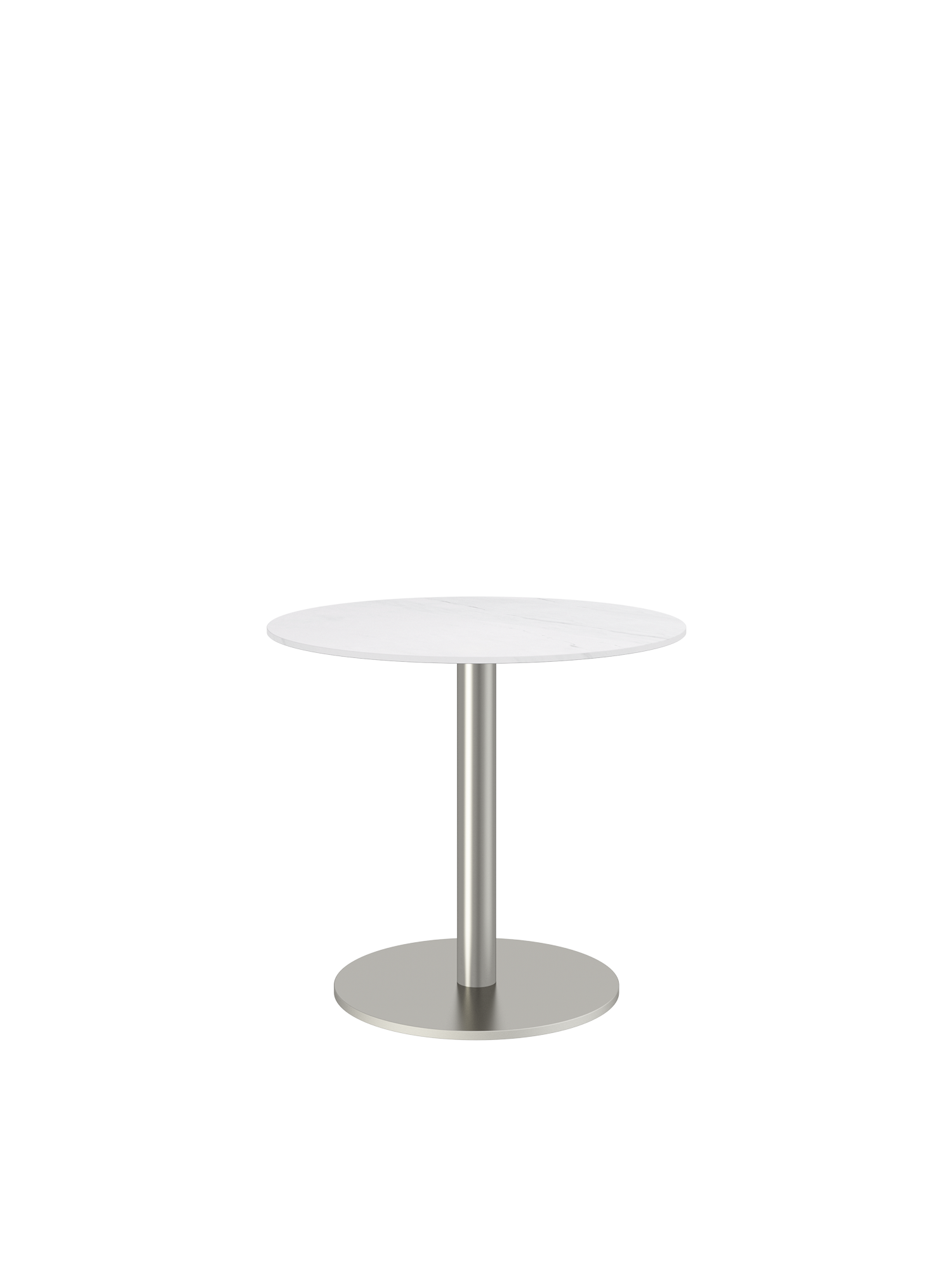 Ronda Mittelfusstisch Edelstahl rund 80 Tischplatte Keramik Weiss marmoriert