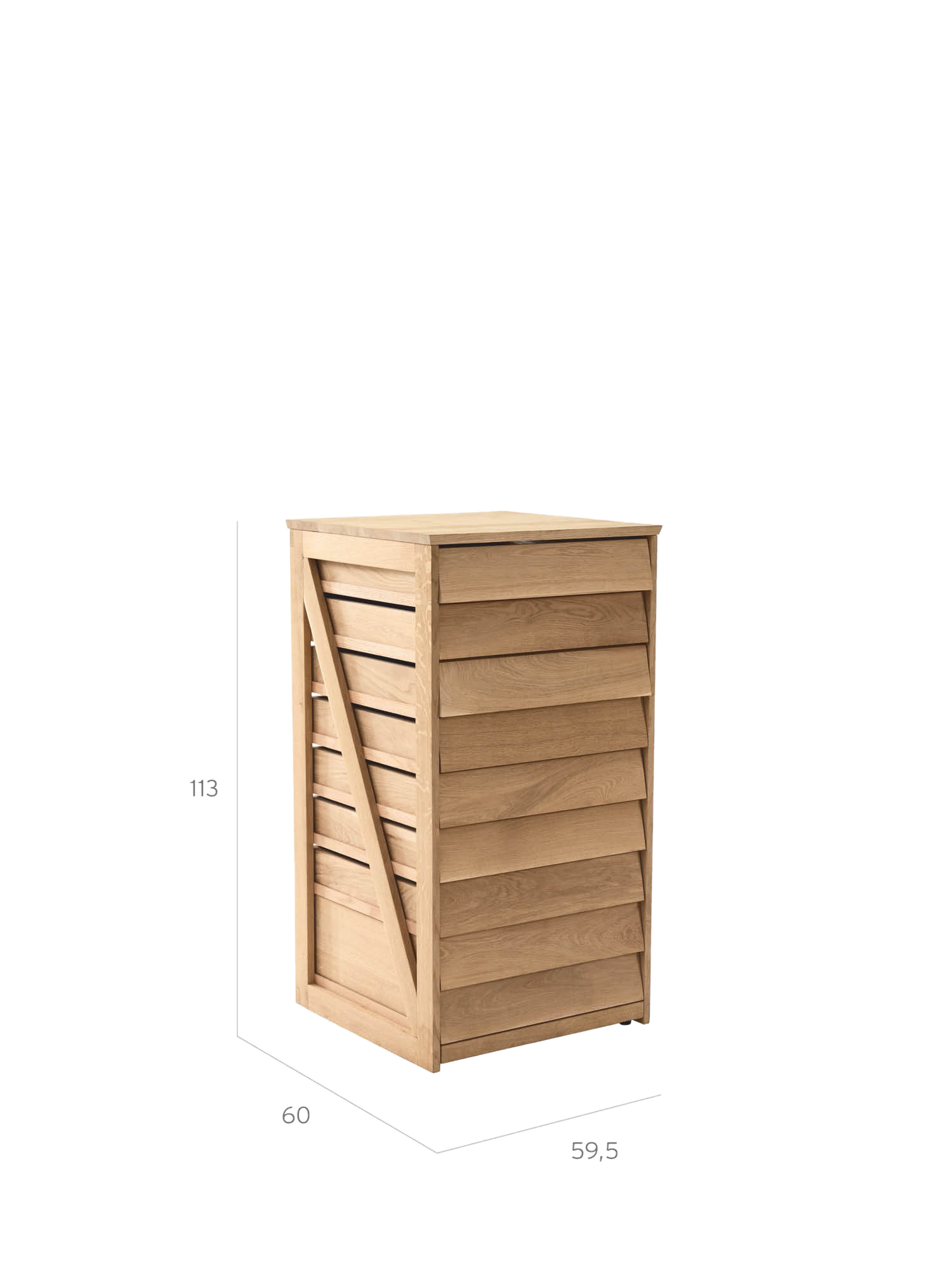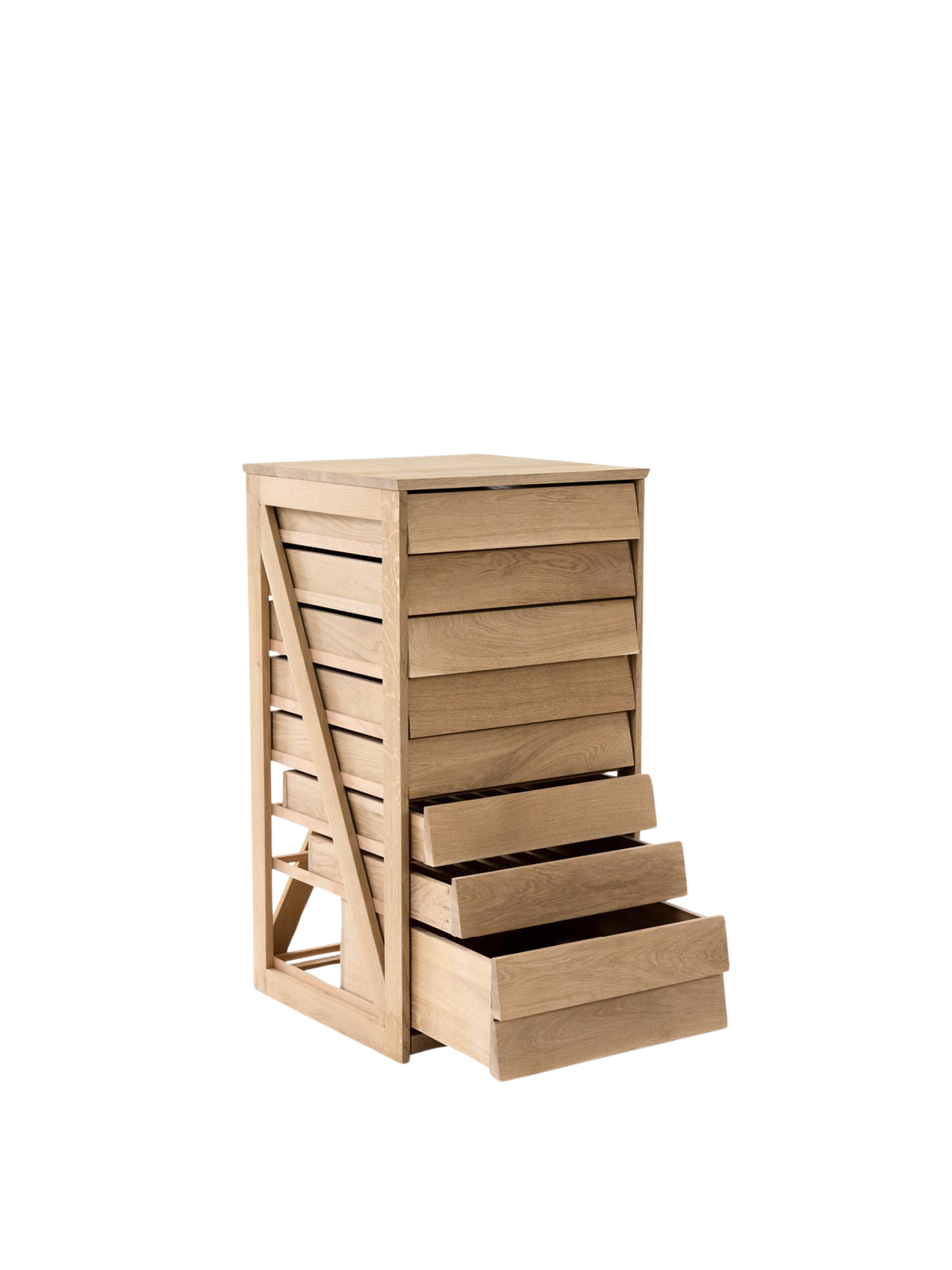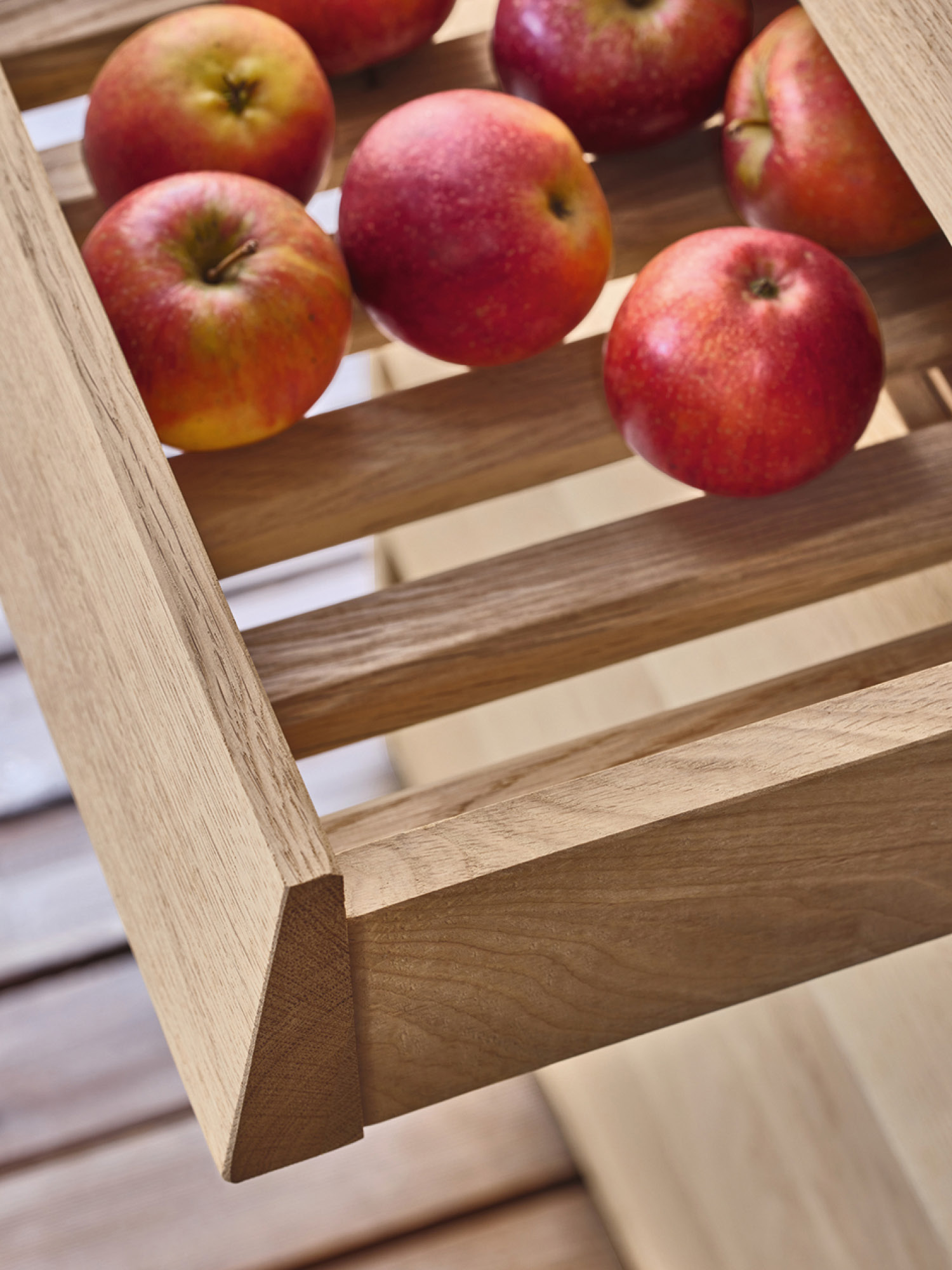 Mit acht Schubladen stiftet die Rosière Horde reichlich Platz für Obst und Gemüse – aus dem eigenen Garten oder vom Wochenmarkt. Die unterste Schublade wurde speziell für Kartoffeln konzipiert und ist entsprechend höher (ca. 19 cm) als die anderen (ca. 9 cm). Die Böden sämtlicher Schubladen bestehen aus eng gesetzten Leisten und gewährleisten eine optimale Luftzirkulation für die Lagerung von Lebensmitteln.