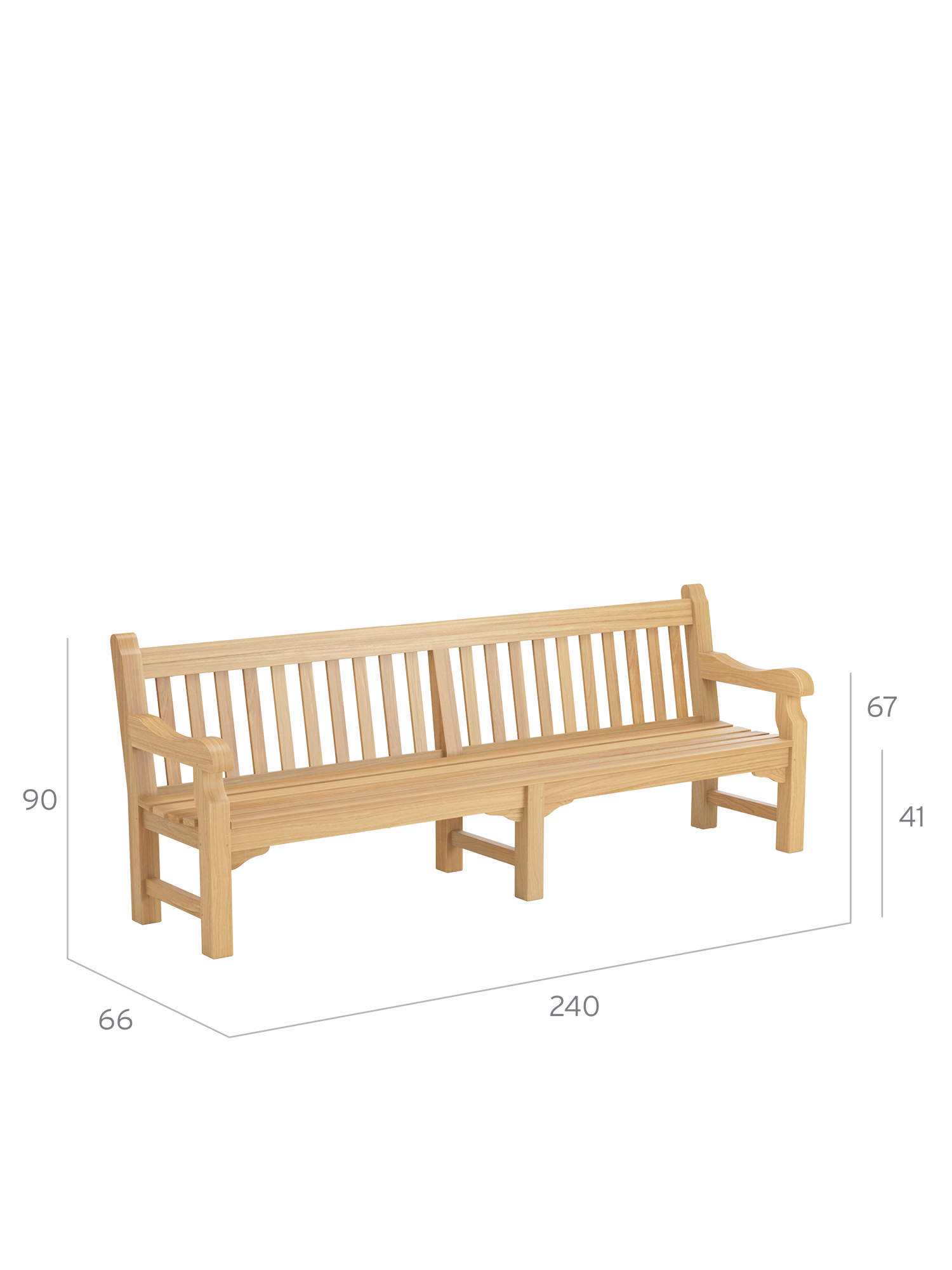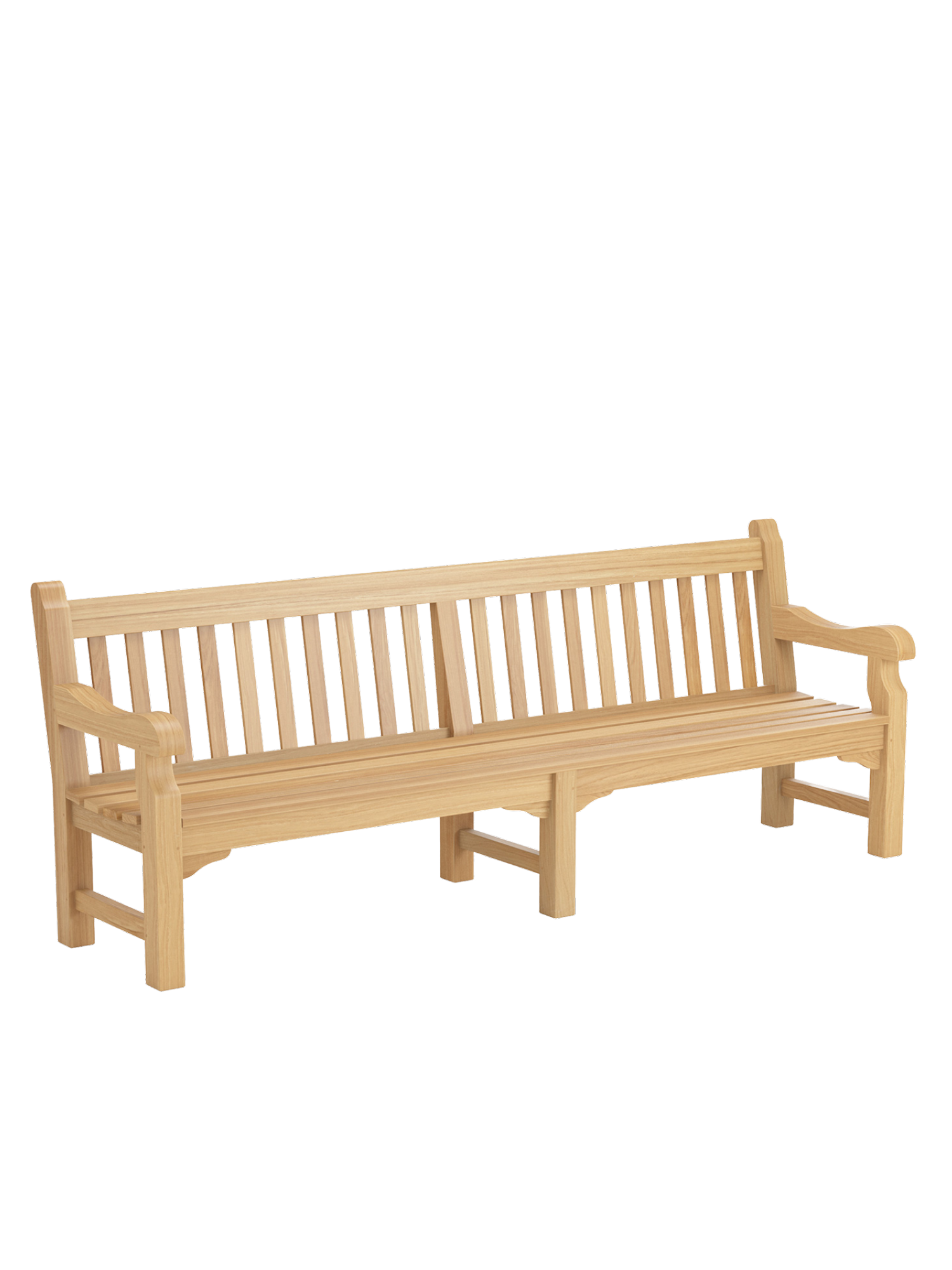 Das Urbild der britischen Parkbank besteht aus massivem Teak und macht sich damit unabhängig von allen Launen des Wetters. Sie ist in zwei Größen erhältlich.