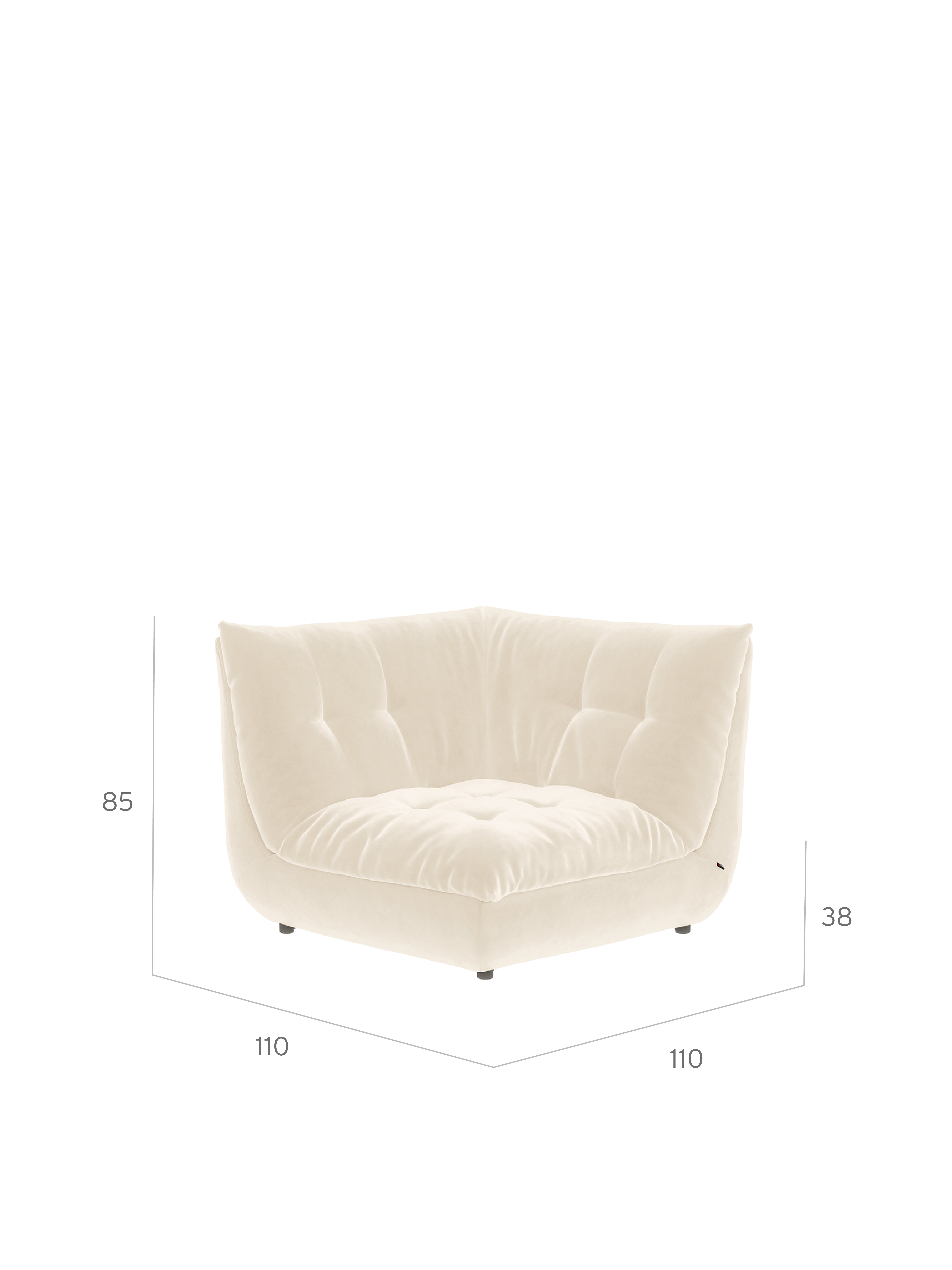- Eschenholzkorpus mit voluminösen Polstern und einem Bezug aus Veloursstoff