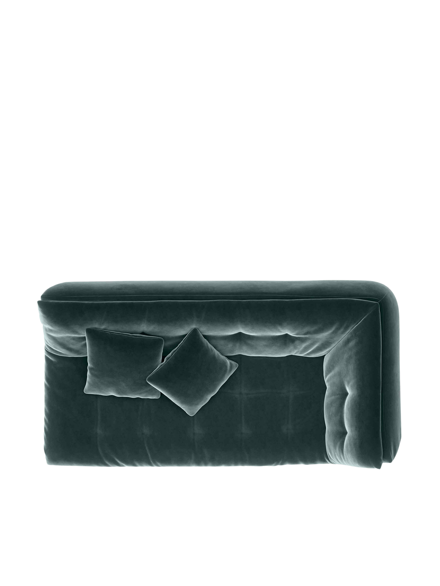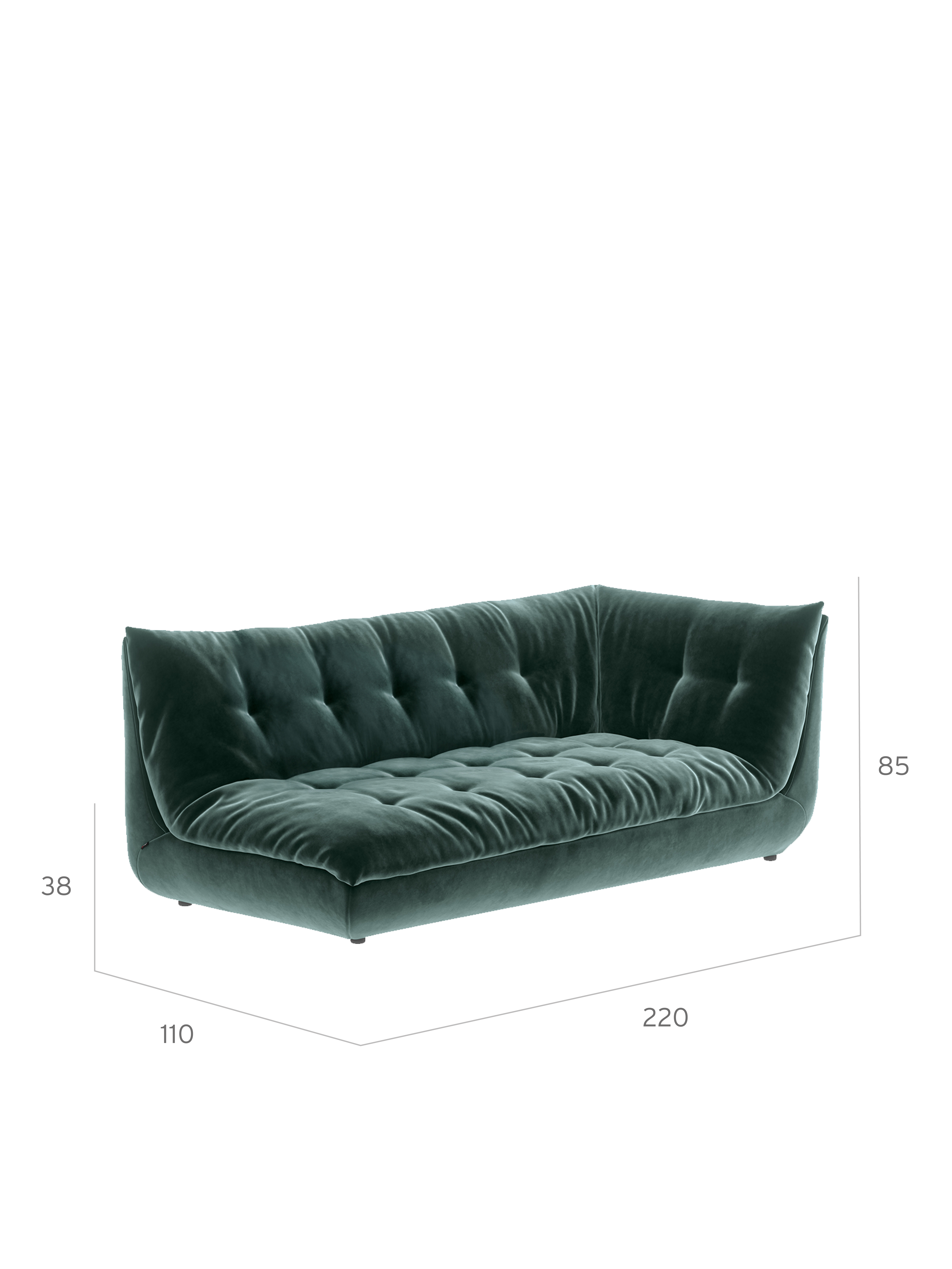 - Eschenholzkorpus mit voluminösen Polstern und einem Bezug aus Veloursstoff