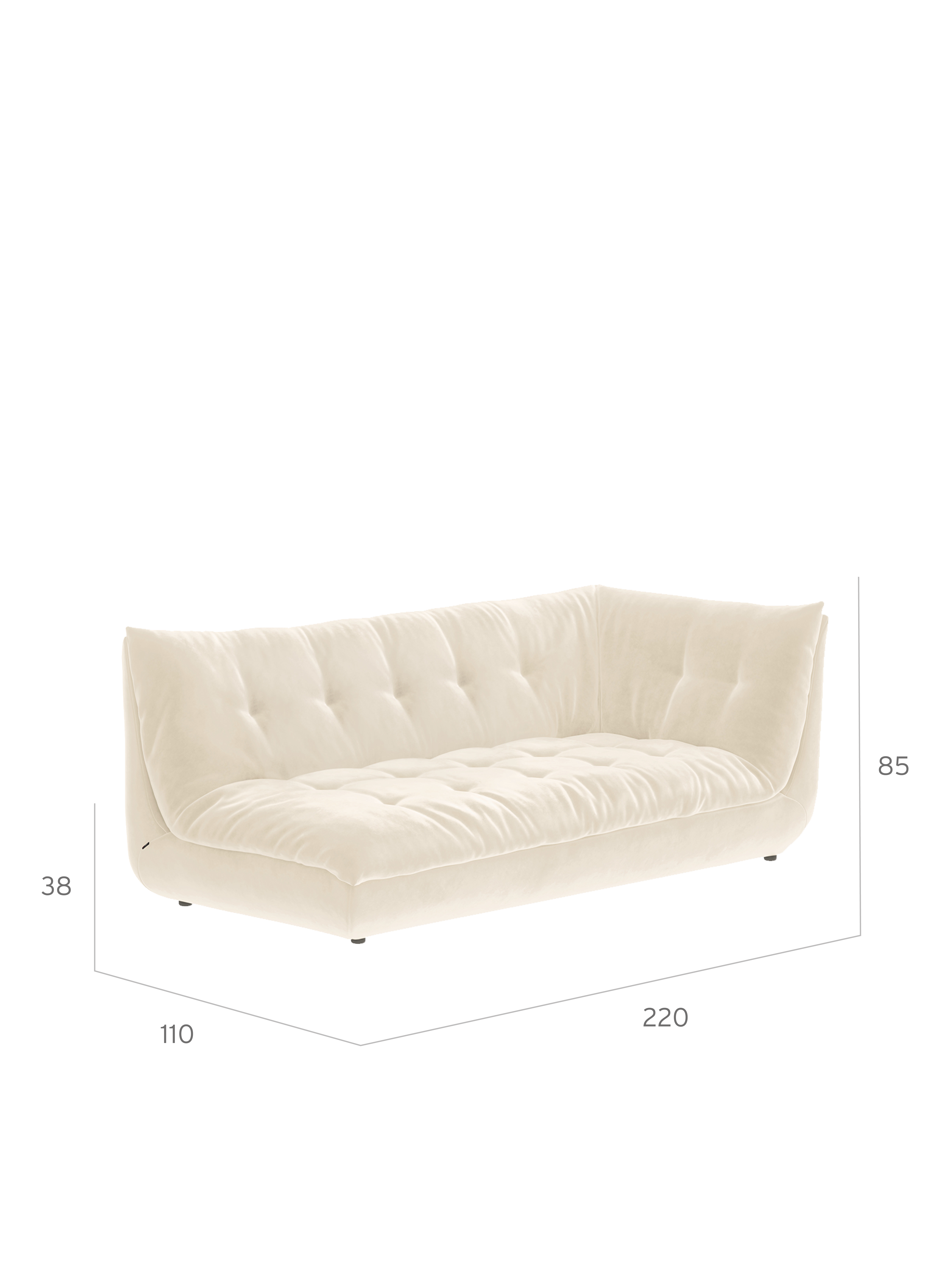 - Eschenholzkorpus mit voluminösen Polstern und einem Bezug aus Veloursstoff