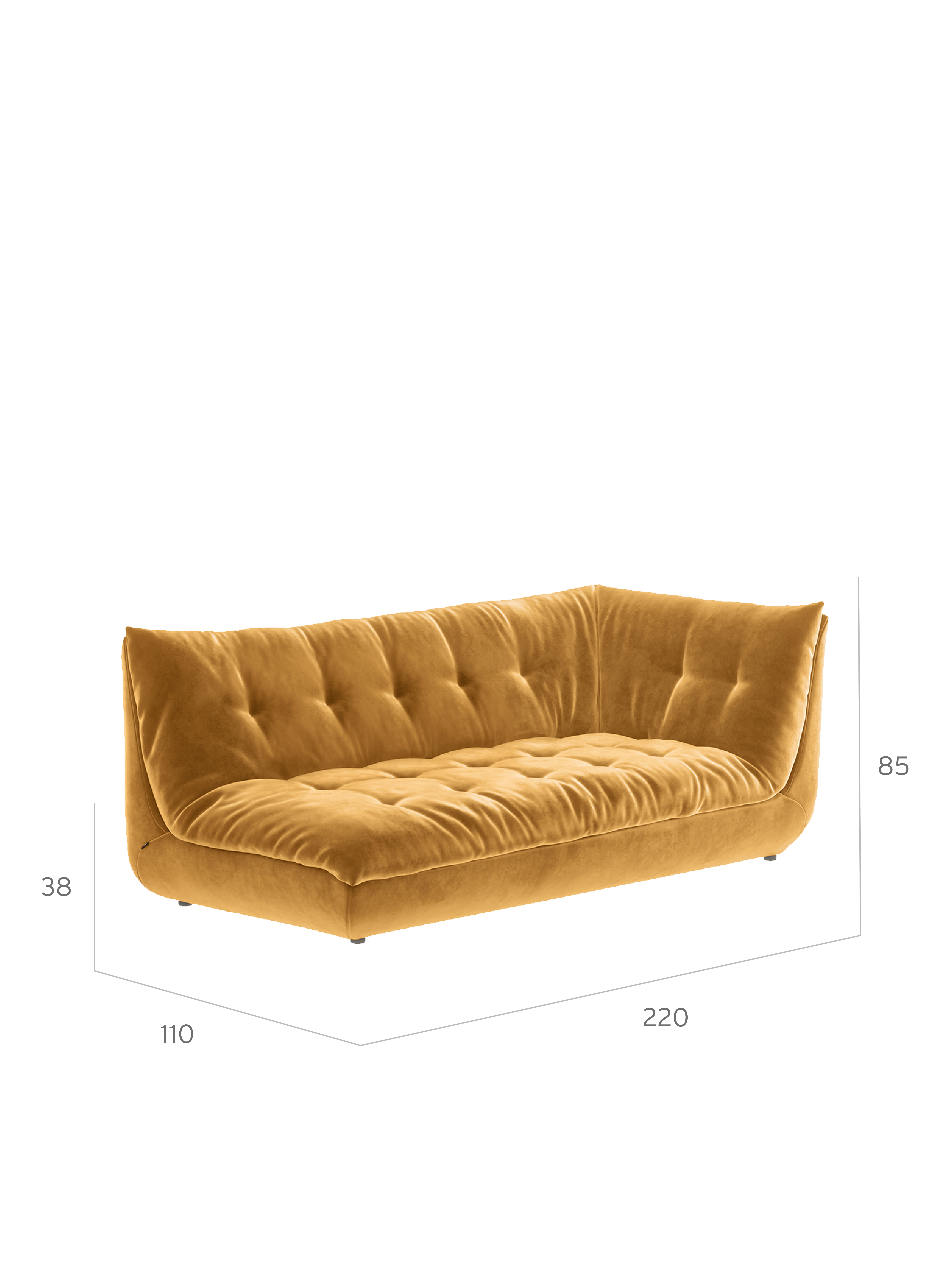 - Eschenholzkorpus mit voluminösen Polstern und einem Bezug aus Veloursstoff