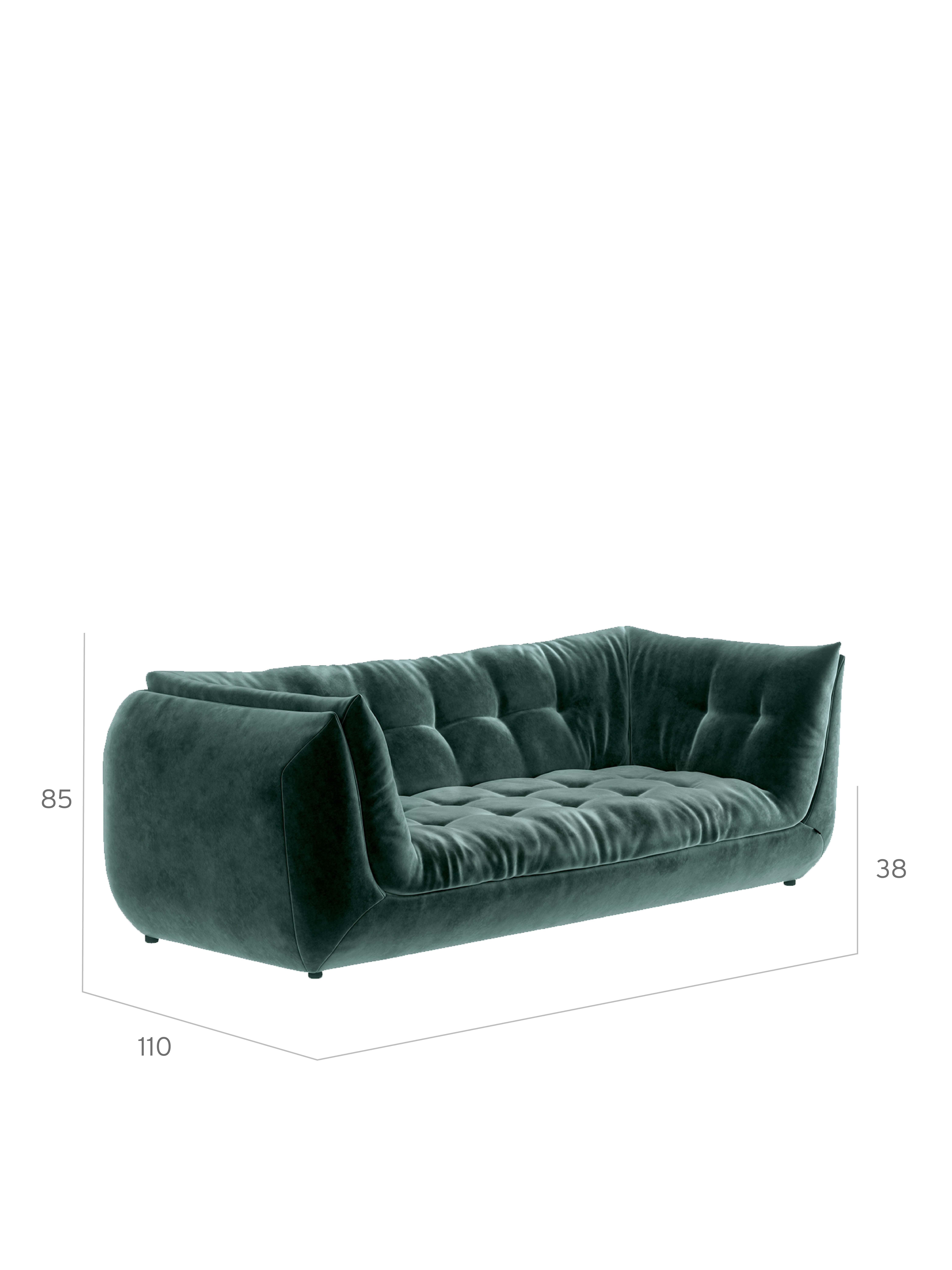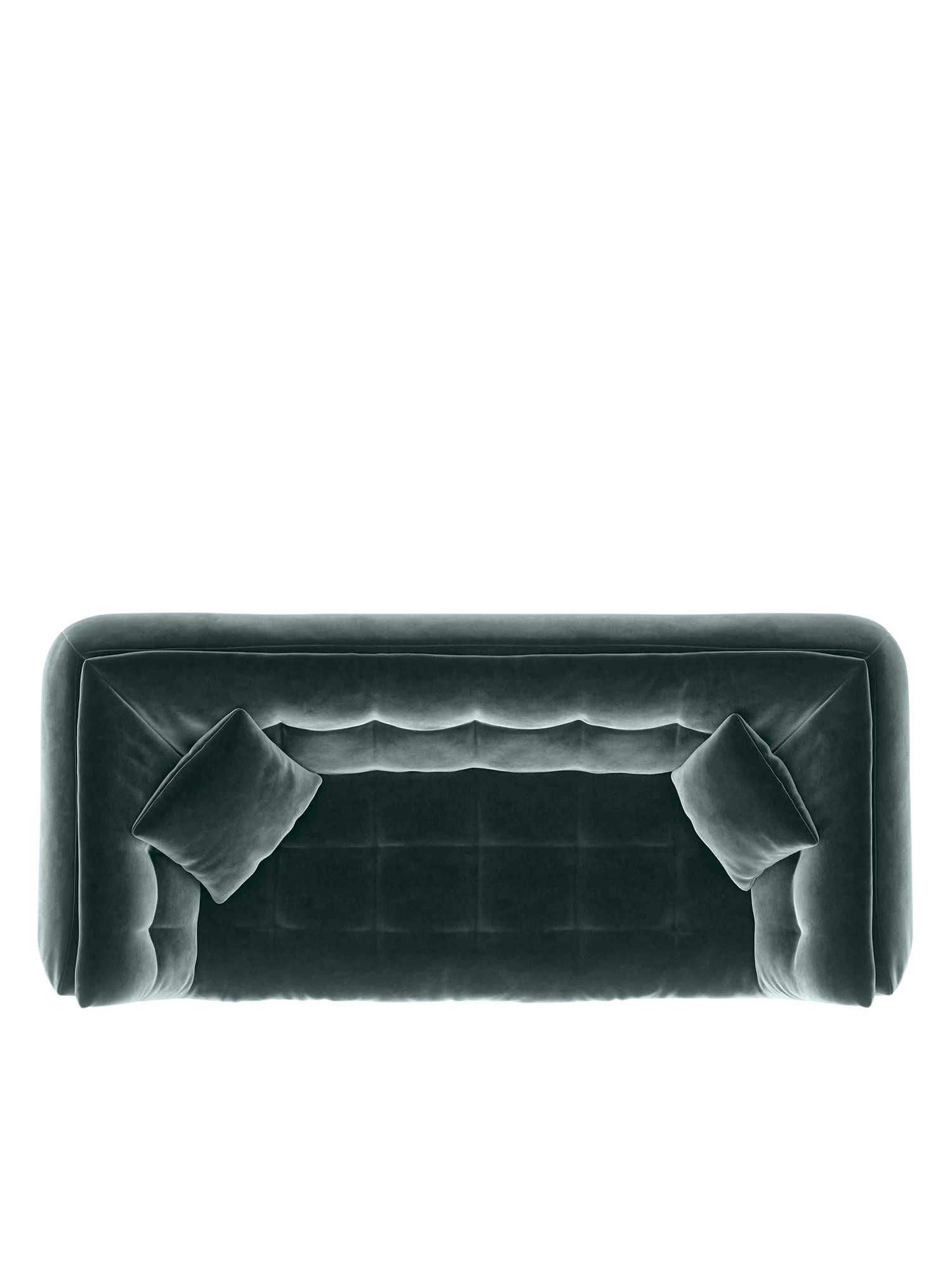 - Eschenholzkorpus mit voluminösen Polstern und einem Bezug aus Veloursstoff