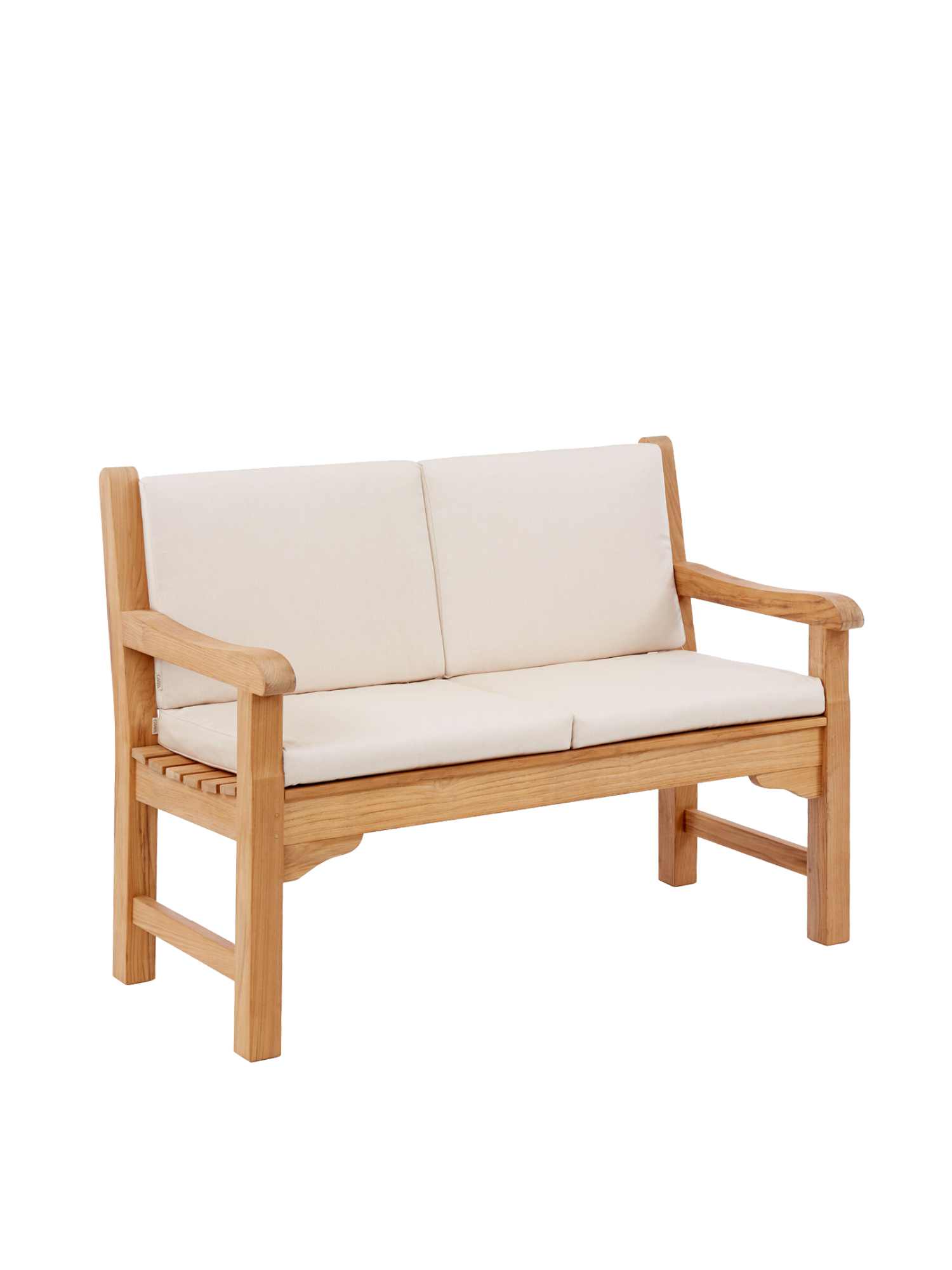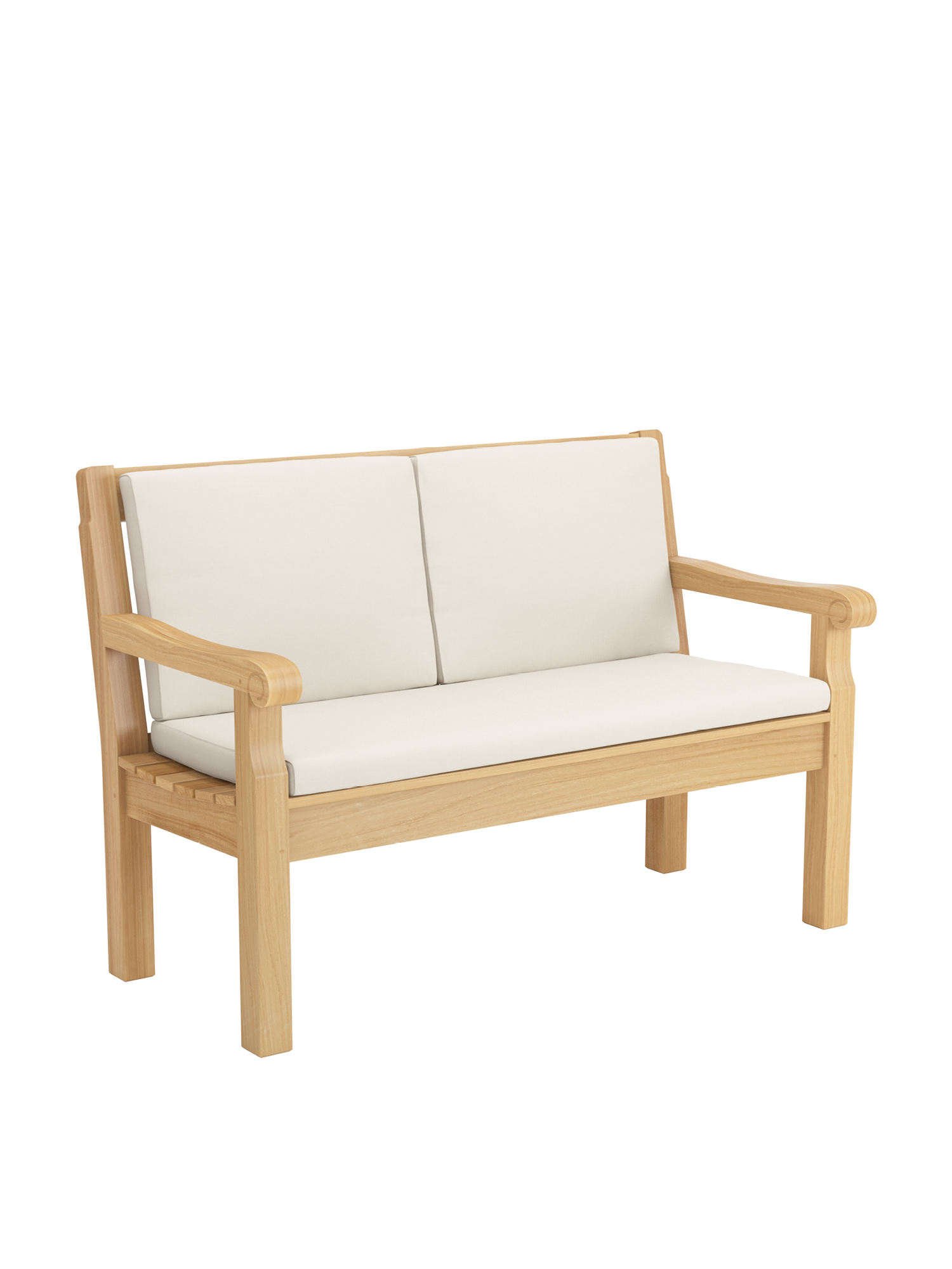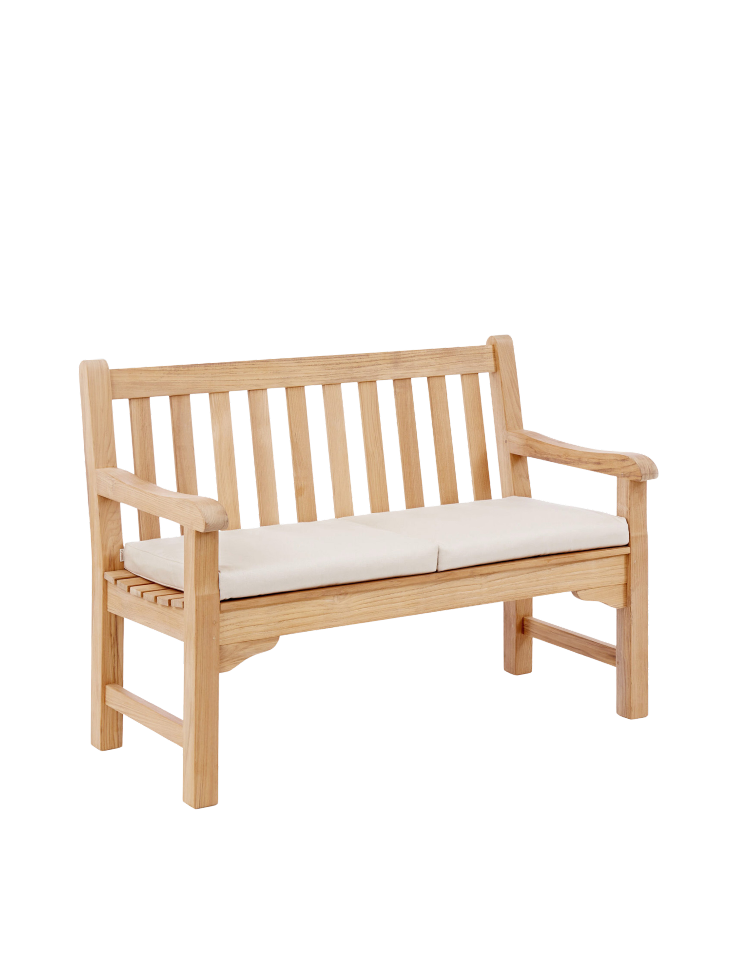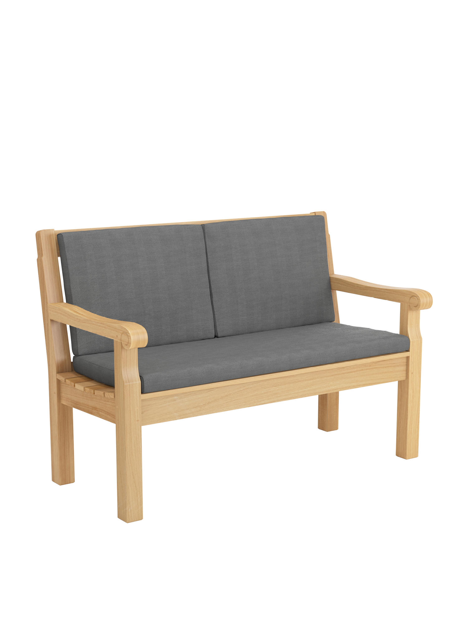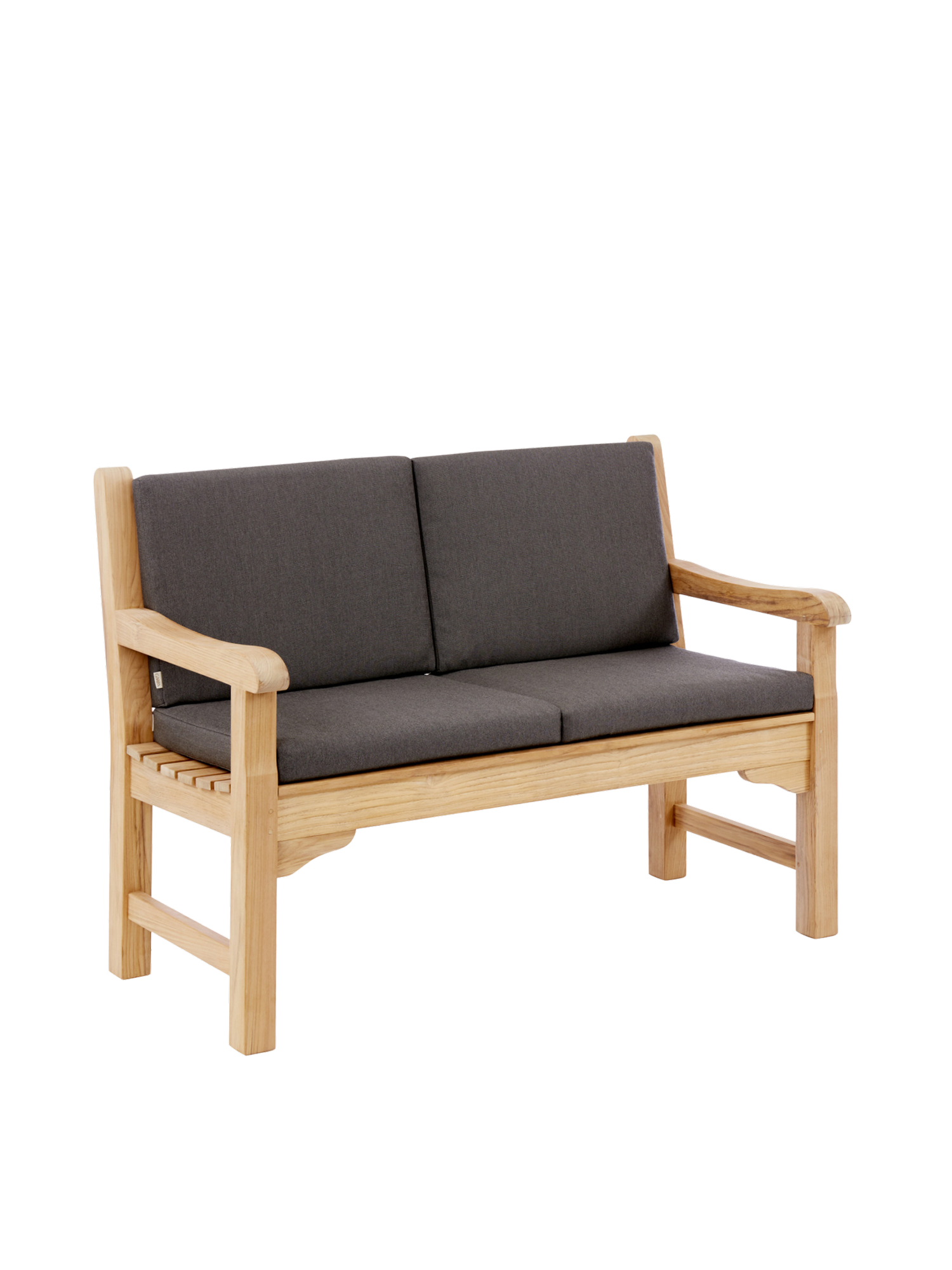 Wer mit Hingabe Rasen mäht und Blumen gießt, darf sich auf englischer Tradition ausruhen. Wer einfach nur die Sonne genießen will, auch. Klassisches Teakdesign adelt jeden Ort. In vier verschiedenen Größen verwöhnt die Gartenbank mit schmeichelnd glatten Oberflächen.