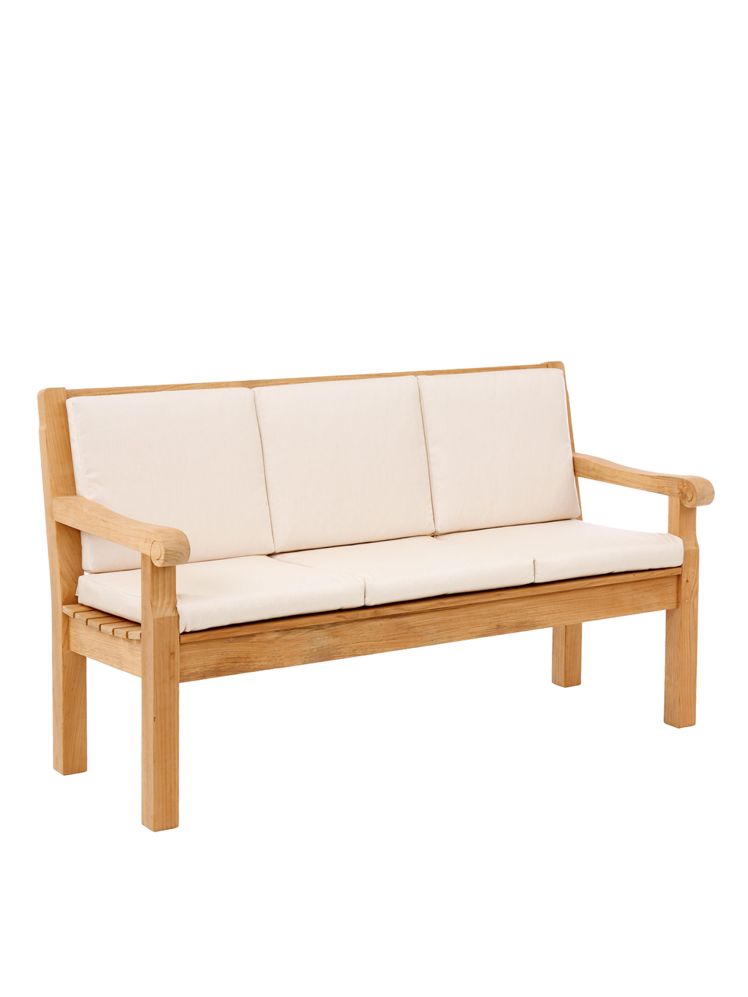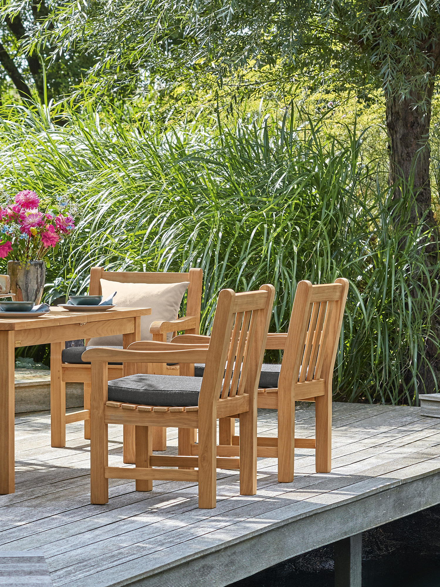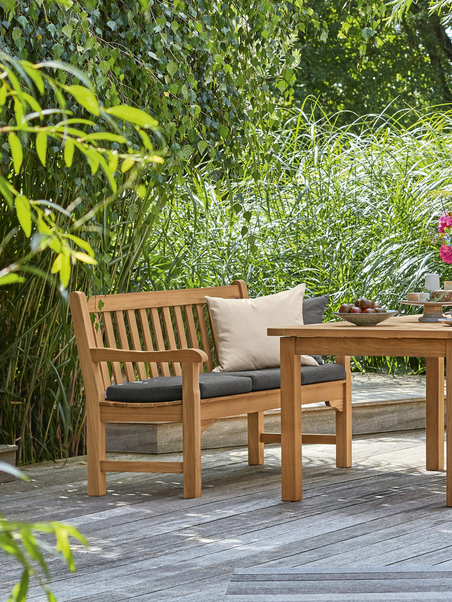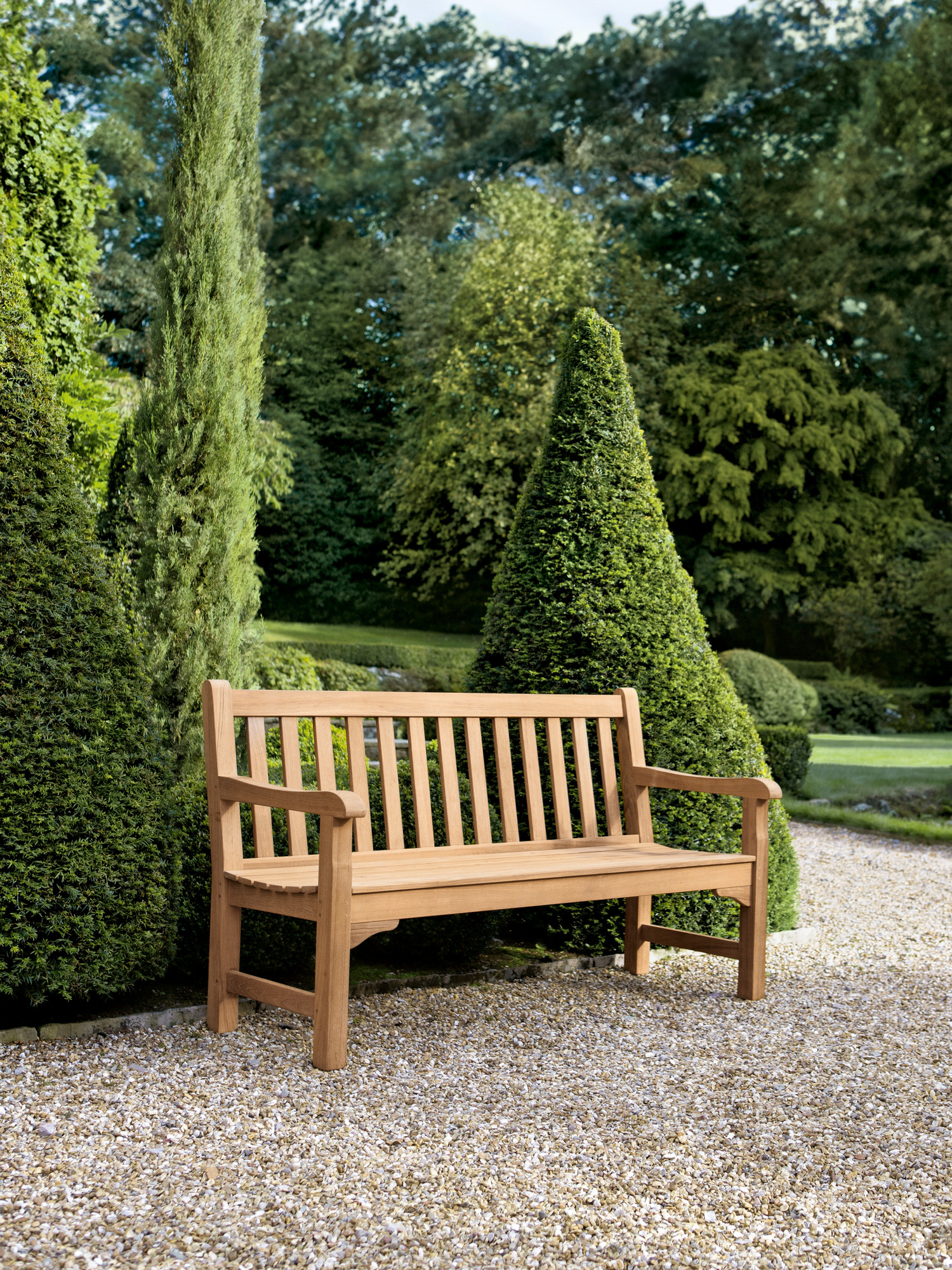 Wer mit Hingabe Rasen mäht und Blumen gießt, darf sich auf englischer Tradition ausruhen. Wer einfach nur die Sonne genießen will, auch. Klassisches Teakdesign adelt jeden Ort. In vier verschiedenen Größen verwöhnt die Bank mit schmeichelnd glatten Oberflächen.
