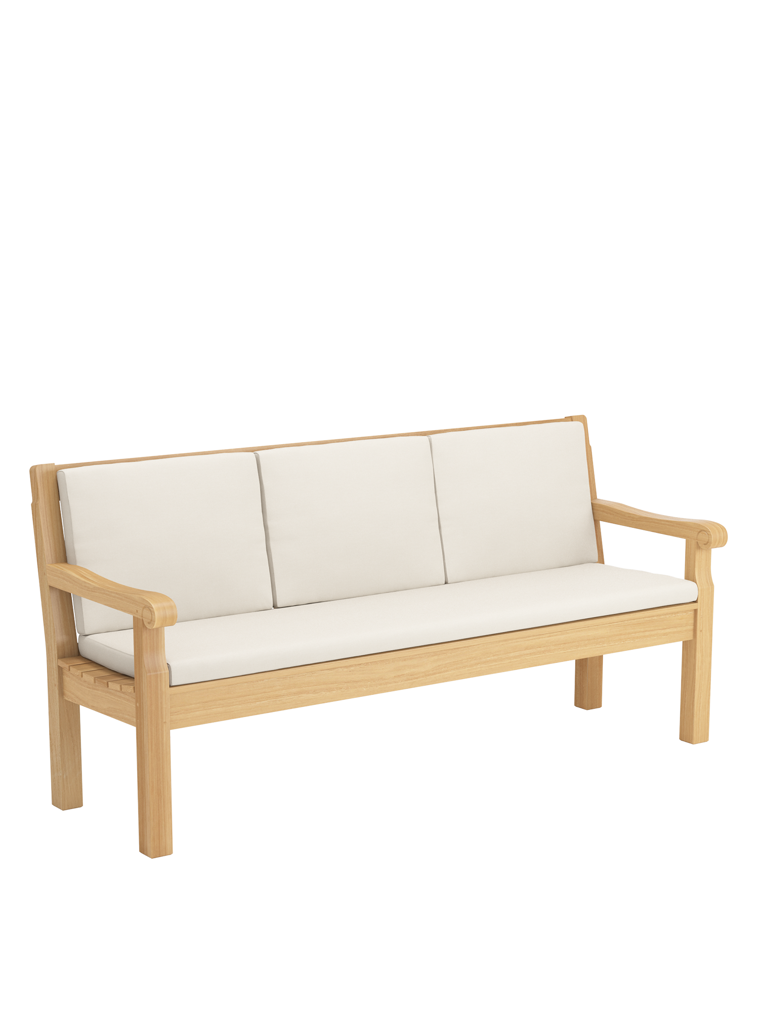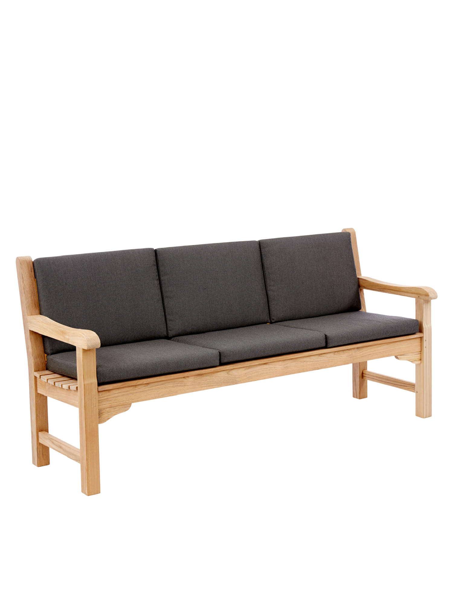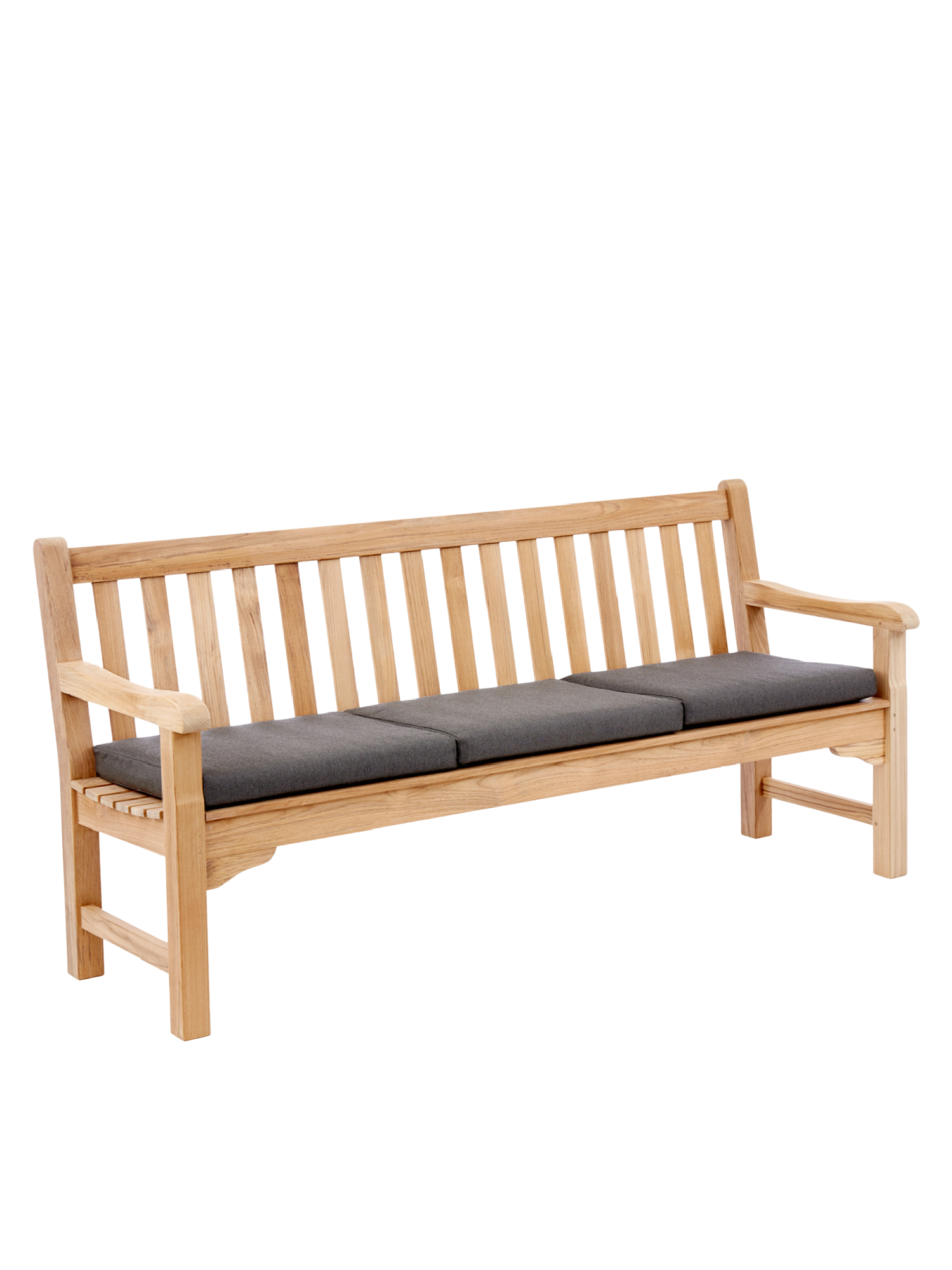 Wer mit Hingabe Rasen mäht und Blumen gießt, darf sich auf englischer Tradition ausruhen. Wer einfach nur die Sonne genießen will, auch. Klassisches Teakdesign adelt jeden Ort. In vier verschiedenen Größen verwöhnt die Bank mit schmeichelnd glatten Oberflächen.