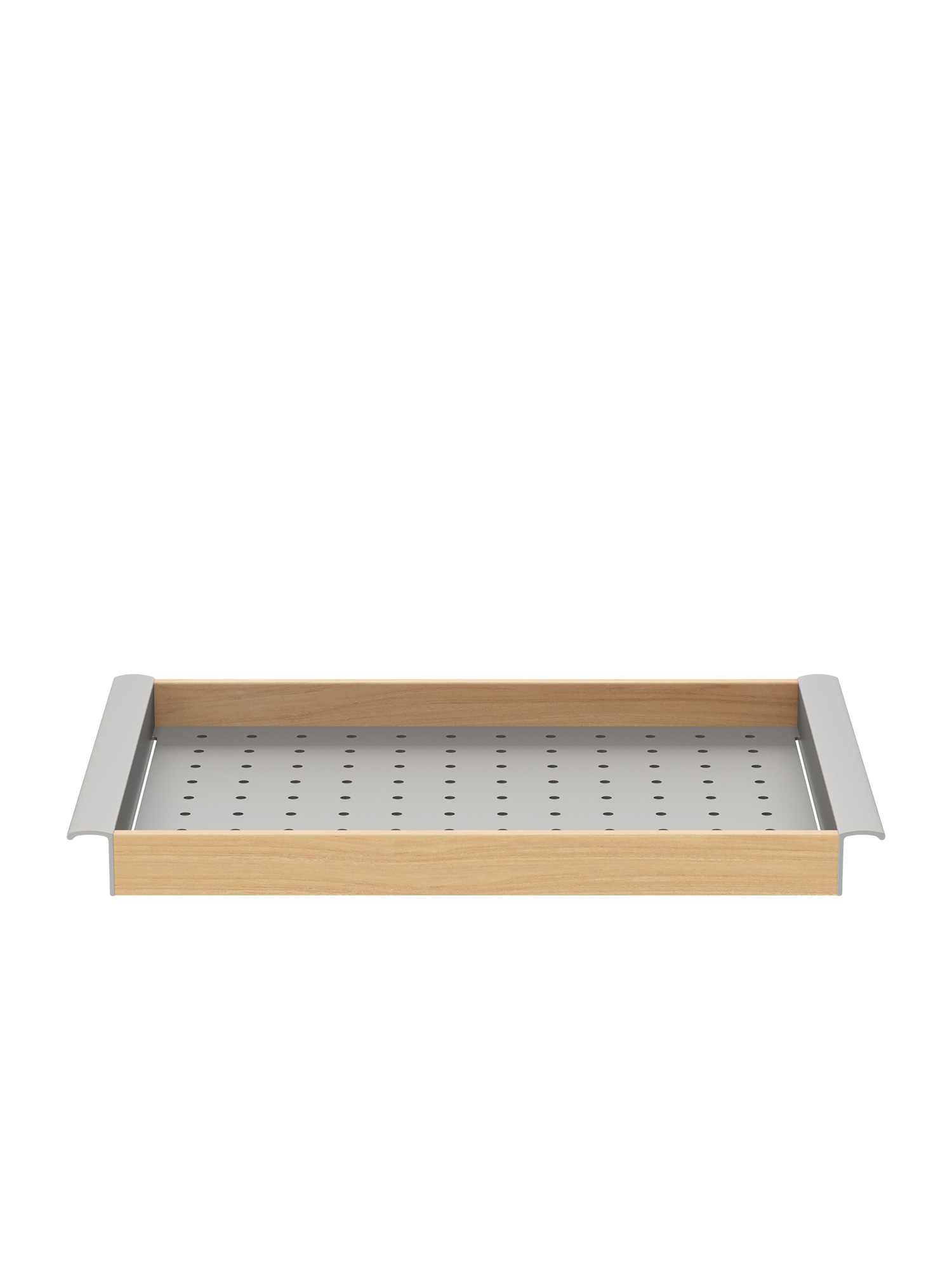 Das abnehmbare Tablett des Monterey Butler's Tray Silk ist als schönes Accessoire auch einzeln erhältlich. Griffe und Boden sind aus Aluminium, die Seiten aus stabilem Teak.