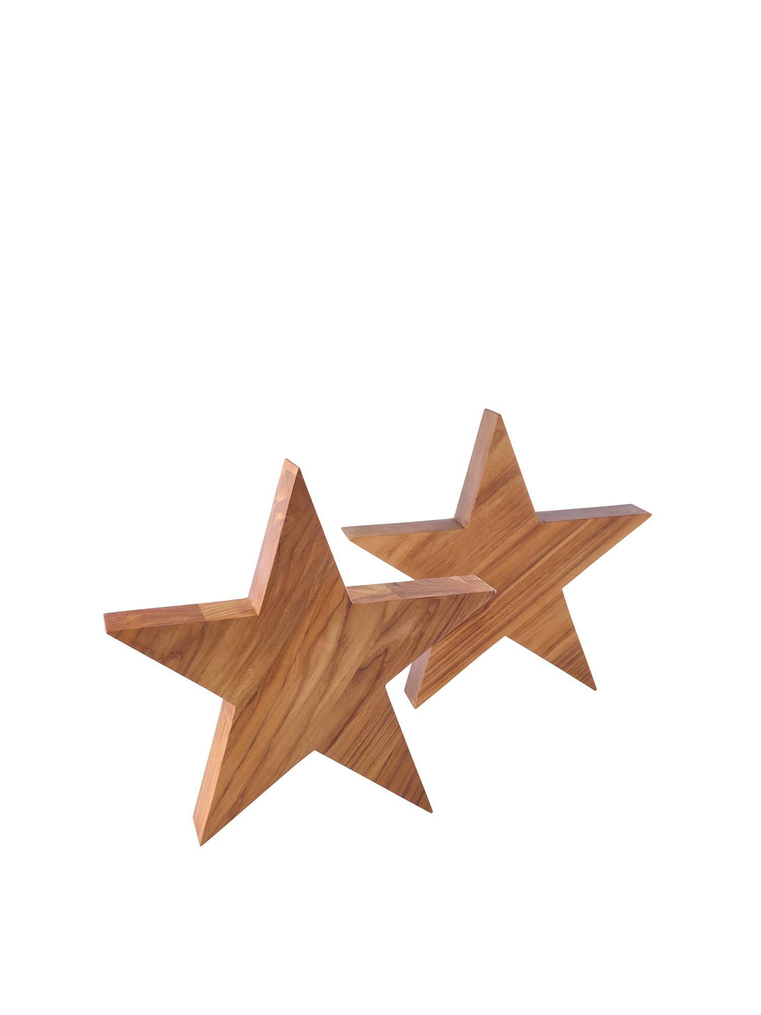Die eleganten Teaksterne künden von der festlichen Jahreszeit und sorgen einzeln oder als Set platziert für weihnachtliche Stimmung.