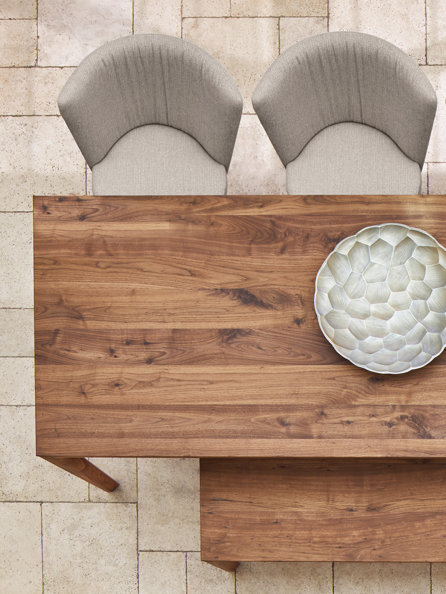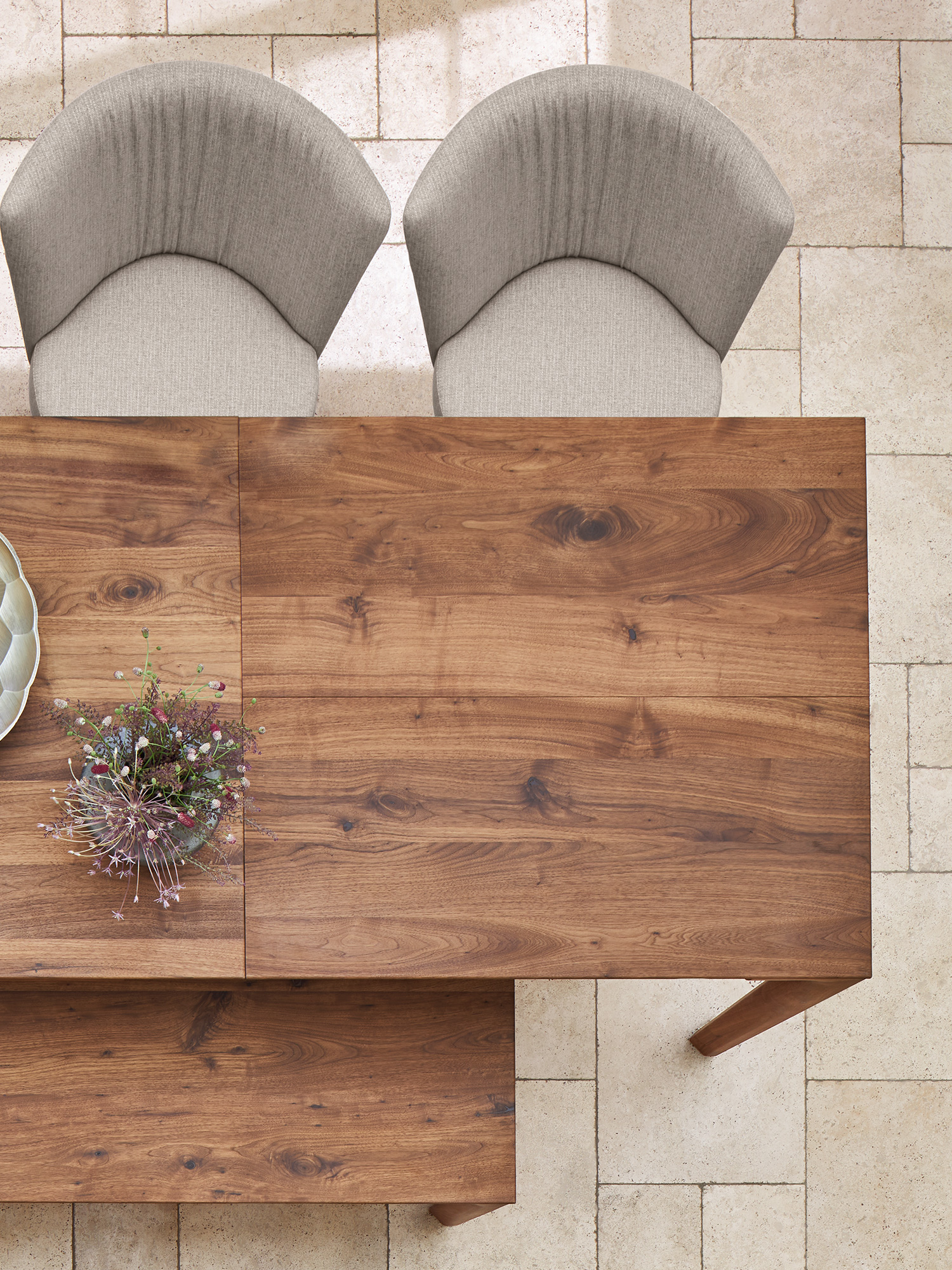 Der Teano Stuhl empfiehlt sich insbesondere für stimmige Kombinationen mit den Tavo Ausziehtischen aus amerikanischem Nussbaum.