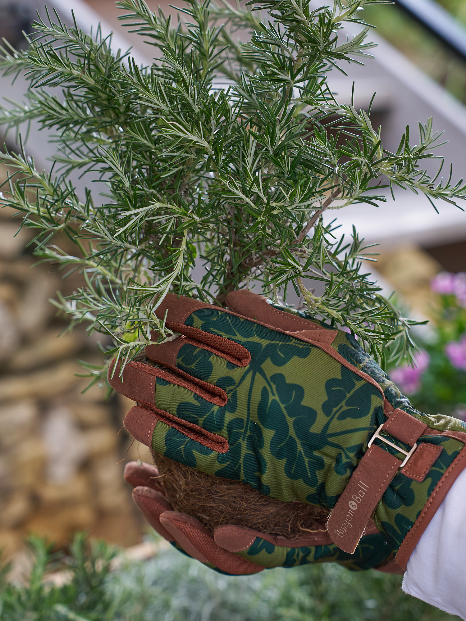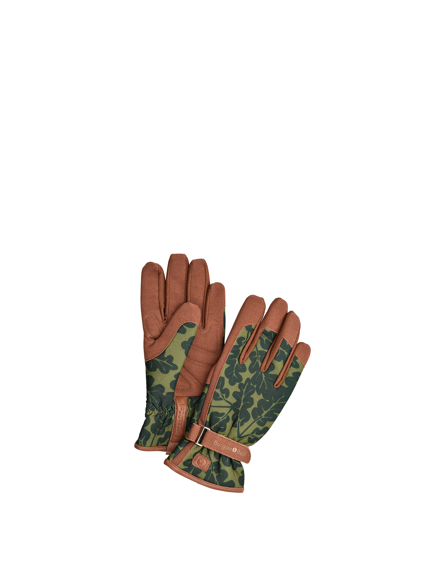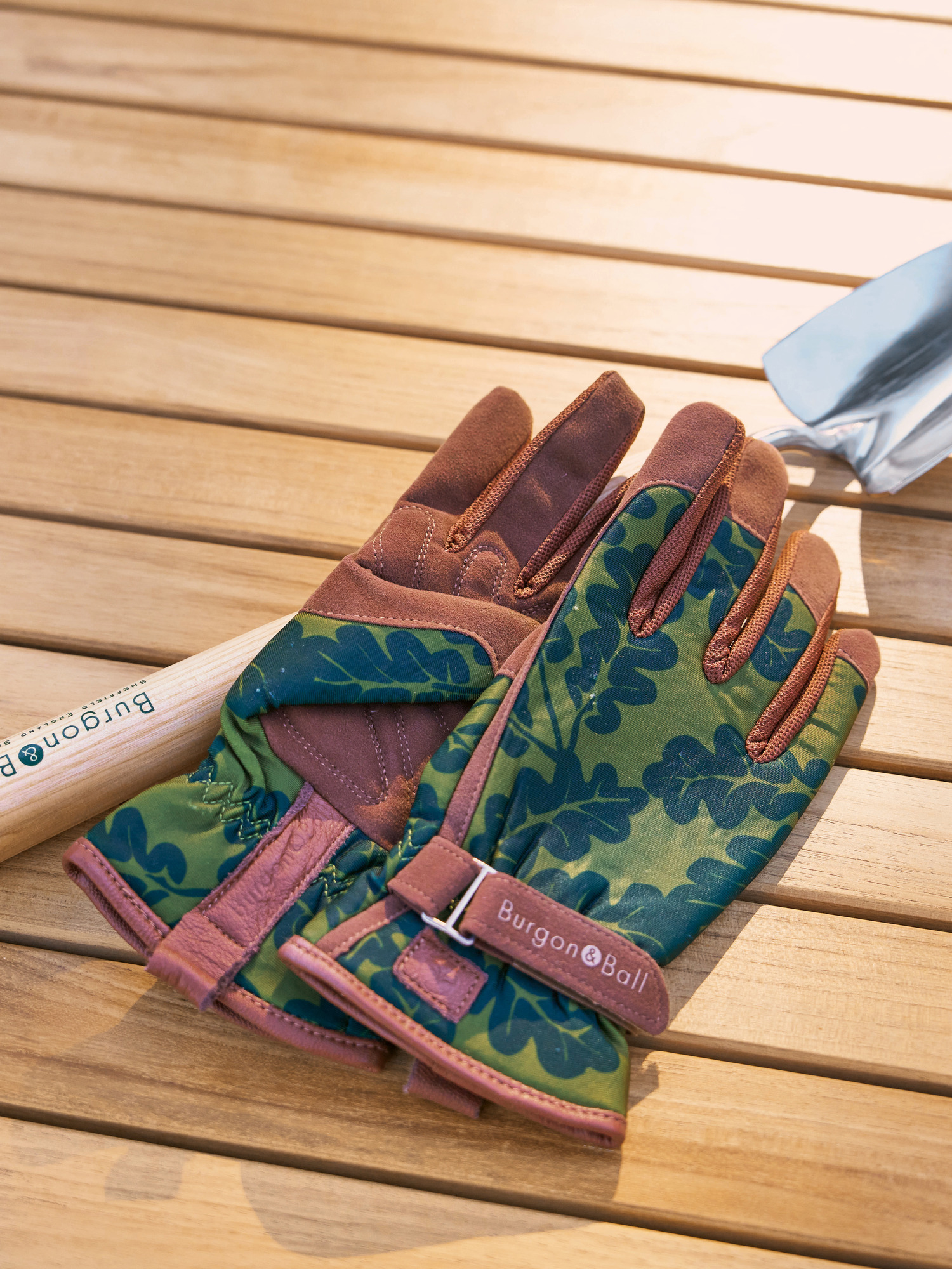 Die in verschiedenen Größen erhältlichen Gartenhandschuhe dienen als modisches Accessoire bei der Gartenarbeit.