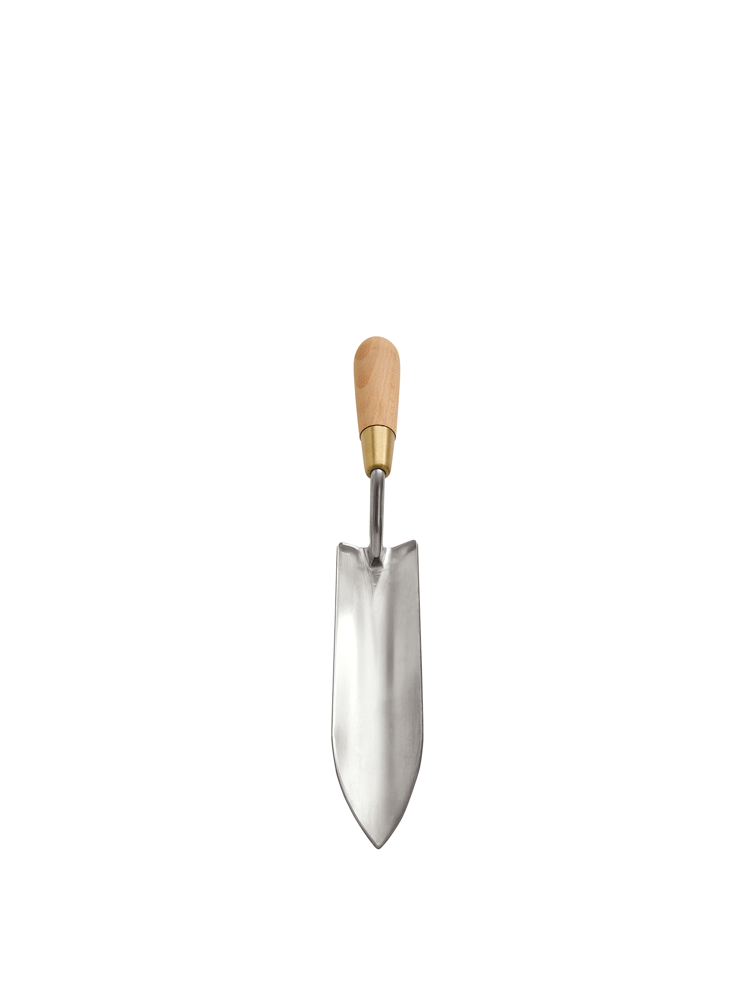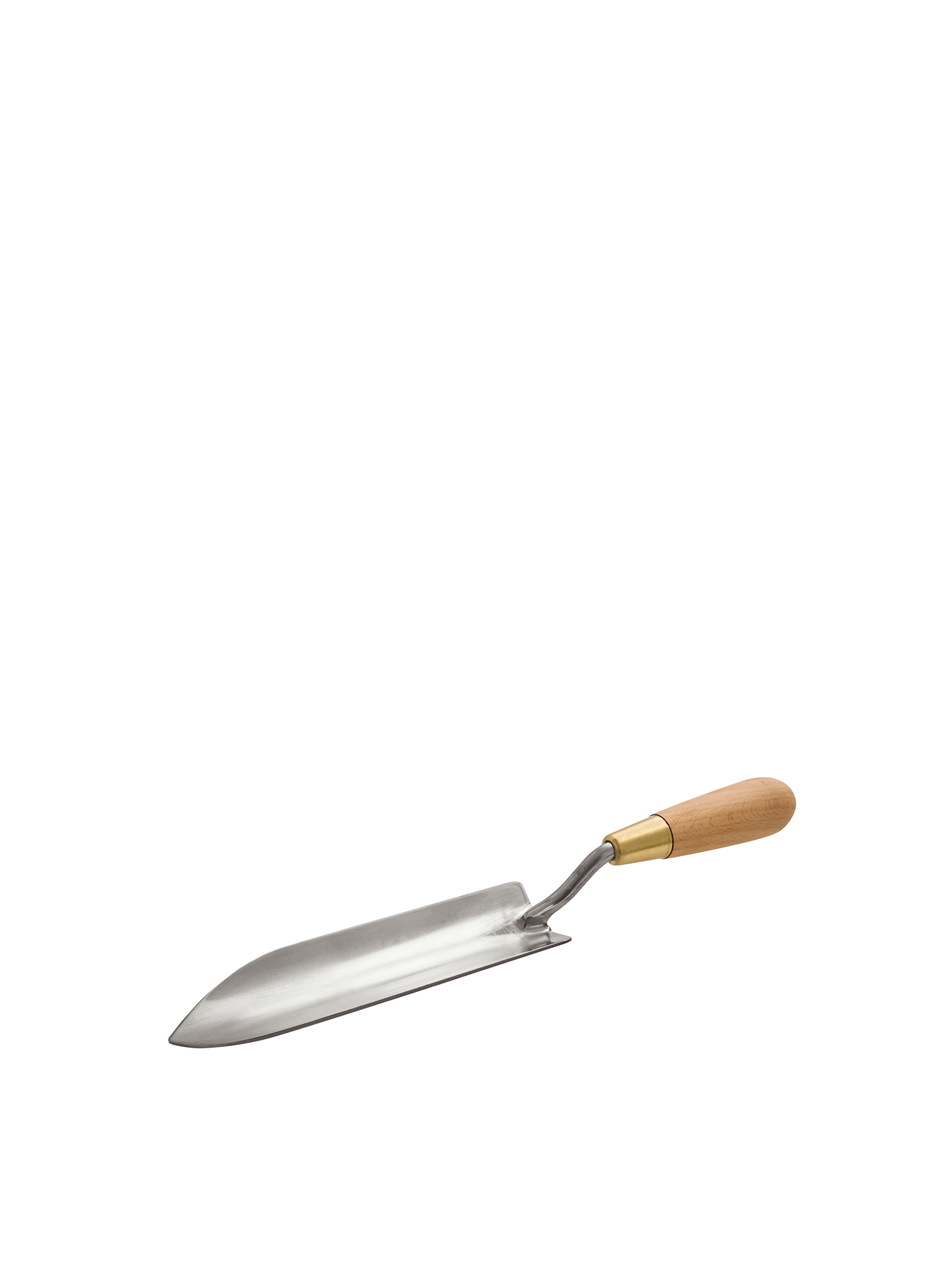 Lang und schmal zugleich, bietet sich die Pflanzkelle aus Edelstahl insbesondere für Gartenarbeiten auf kleinem Raum und zum Jäten von Unkraut mit tiefen Wurzeln an. Ihr Griff aus FSC-zertifiziertem Buchenholz und Messing liegt perfekt in der Hand.