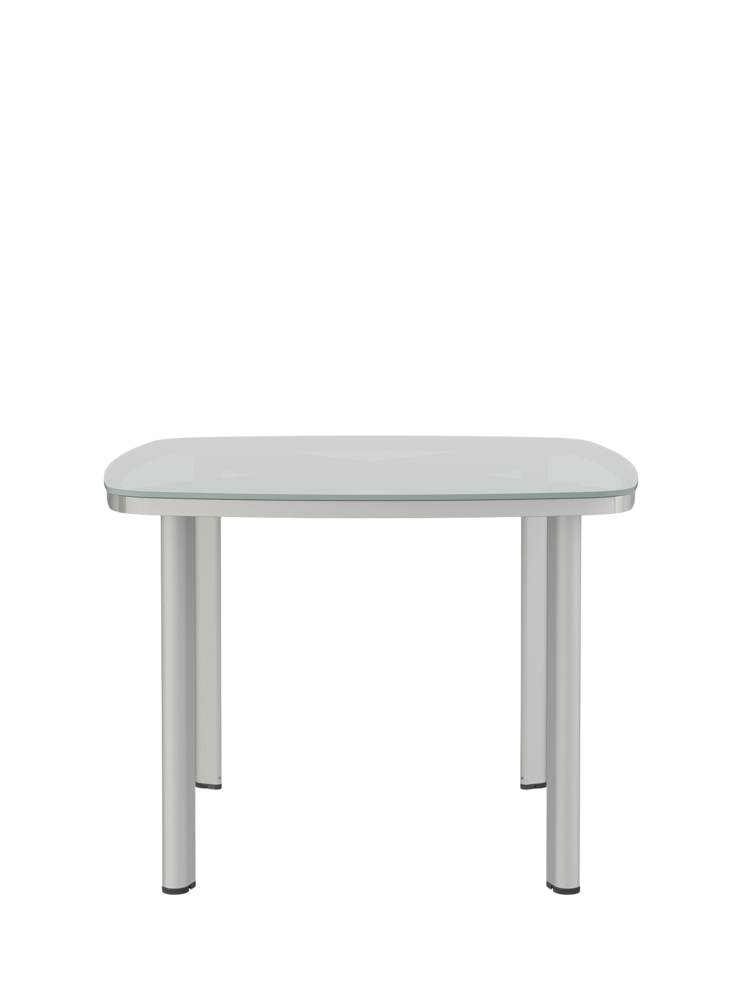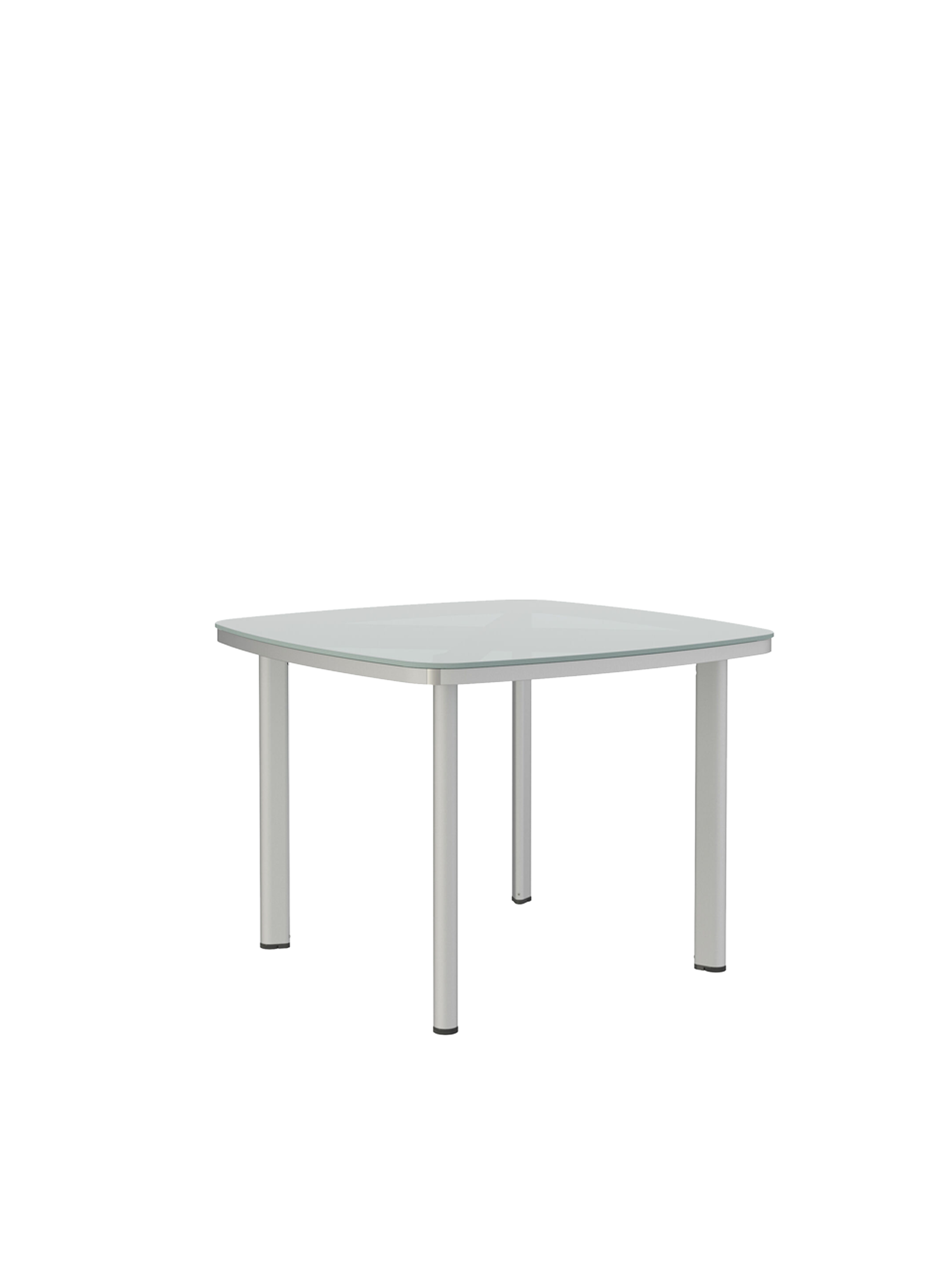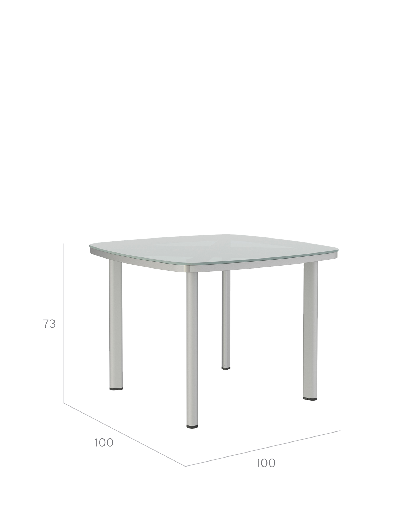 Die zur Temper Serie gehörigen Tische haben gerade Kanten und runde Ecken. Ihre Aluminiumgestelle sind aufwendig eloxiert, die Tischplatten bestehen aus hochwertiger, frostfester Steinkeramik in einer Marmoroptik oder farbigem Glas.
