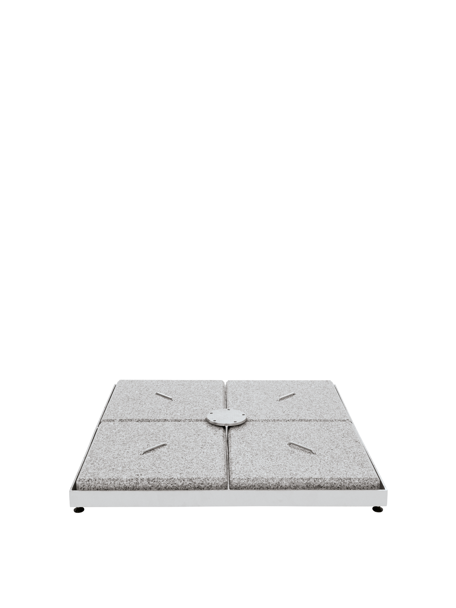 Optimaler Schutz, ganz unabhängig vom Sonnenstand: Der flexible Pendelschirm lässt sich vertikal um bis zu 90 Grad neigen und in drei festgelegten Positionen arretieren. Der quadratische Schirmständer, der mit polierten Granitplatten beschwert ist, sorgt für festen Stand.