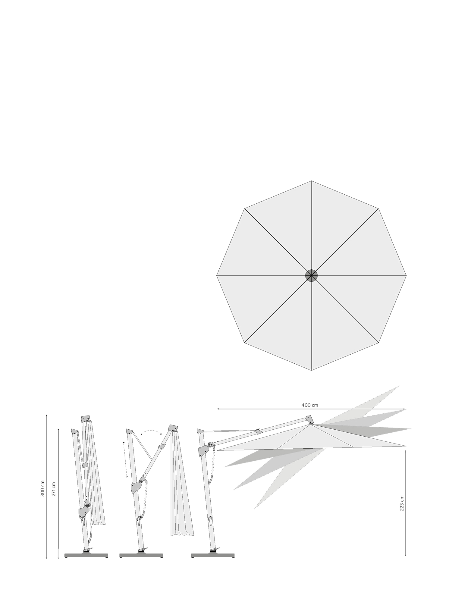 Optimaler Schutz, ganz unabhängig vom Sonnenstand: Das flexible Trentino Sommerdach lässt sich vertikal um bis zu 90 Grad neigen und in drei festgelegten Positionen arretieren. Der quadratische Schirmständer, der mit polierten Granitplatten beschwert ist, sorgt für festen Stand.