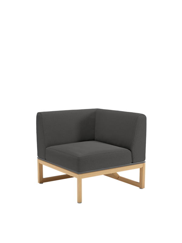 Ein markantes Teakgestell rahmt opulente Polster, die pure Behaglichkeit versprechen. Das vielseitige Eckelement eröffnet großzügigen Gestaltungsspielraum und kann beliebig mit den anderen Polstermöbeln der Kollektion kombiniert werden. Das puristische Design verbindet das Eckelement mit der Trey Sitzgruppe. Gemeinsam laden die zeitlosen Dining- und Loungemöbel zur ganzheitlichen Einrichtung von Gärten und Terrassen ein. Für Komfort, dem einfach nichts hinzuzufügen ist.