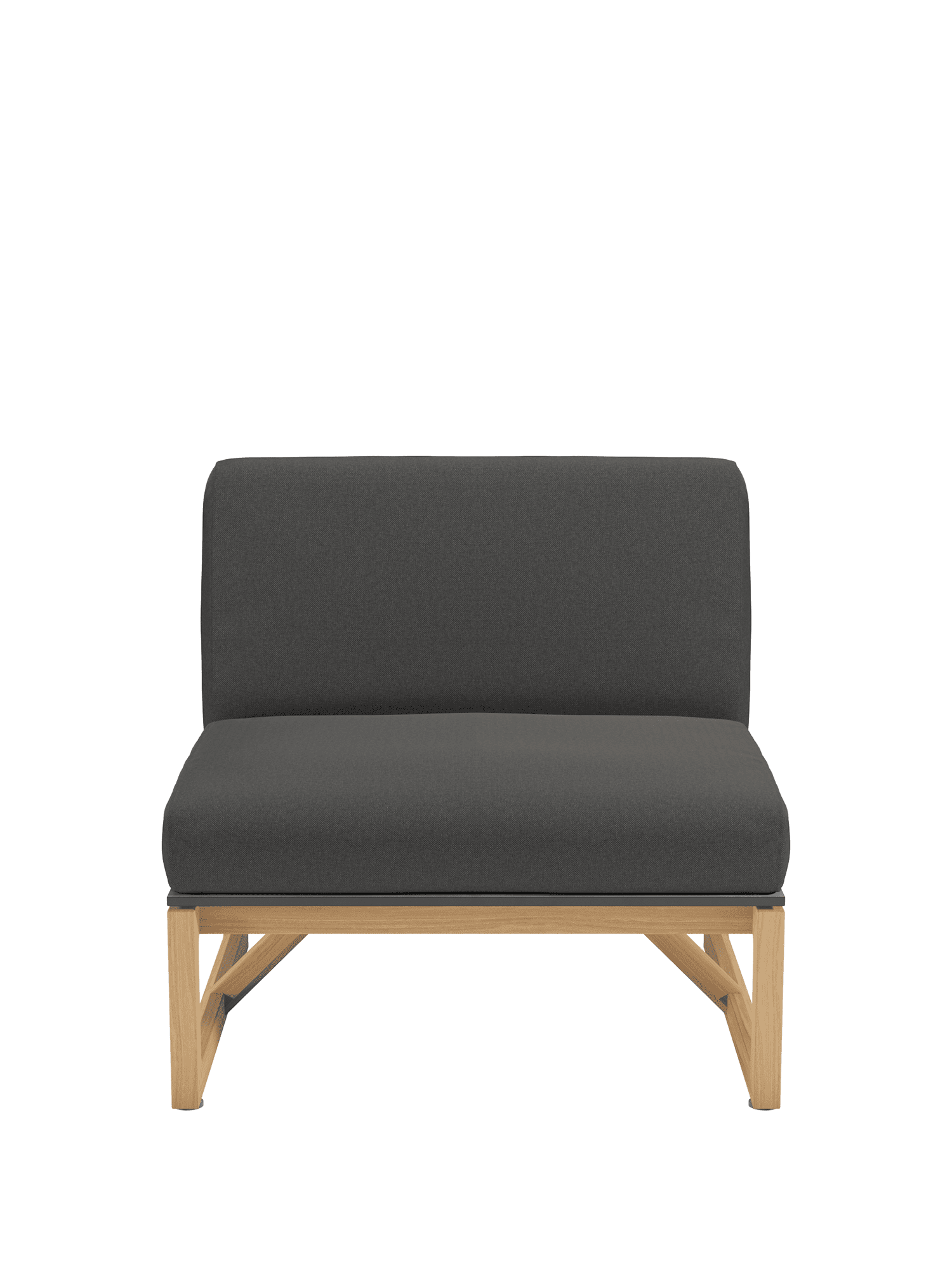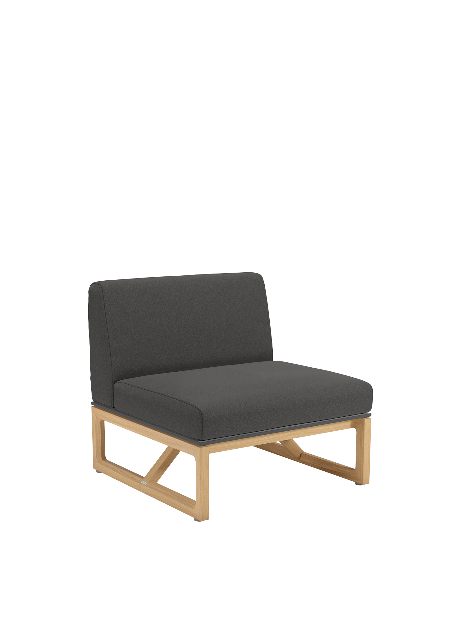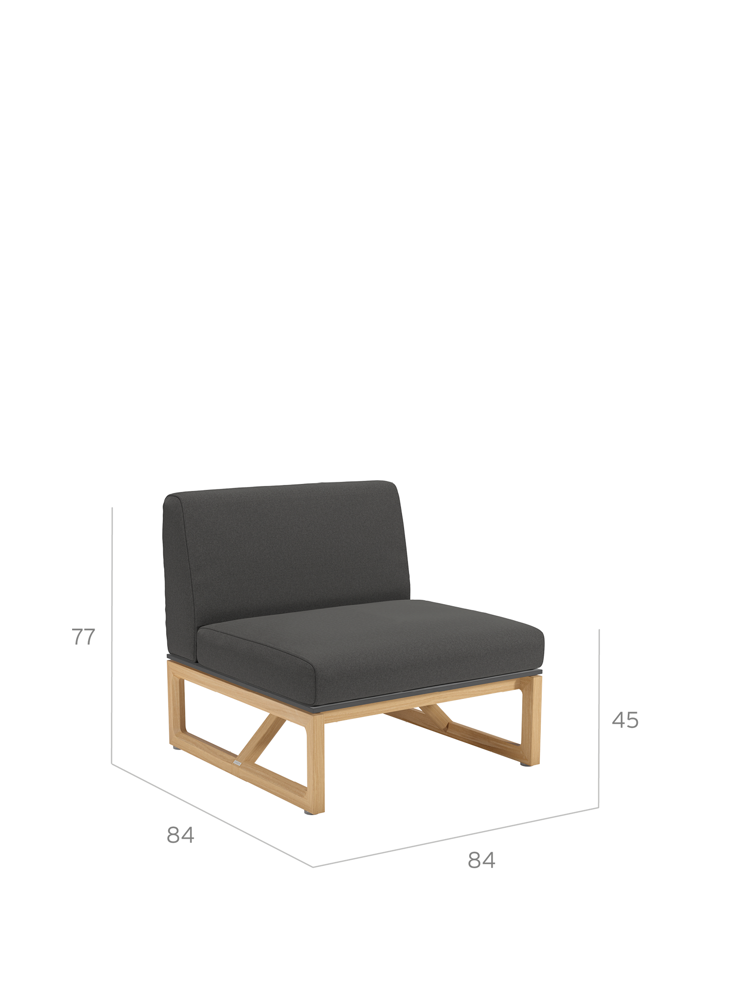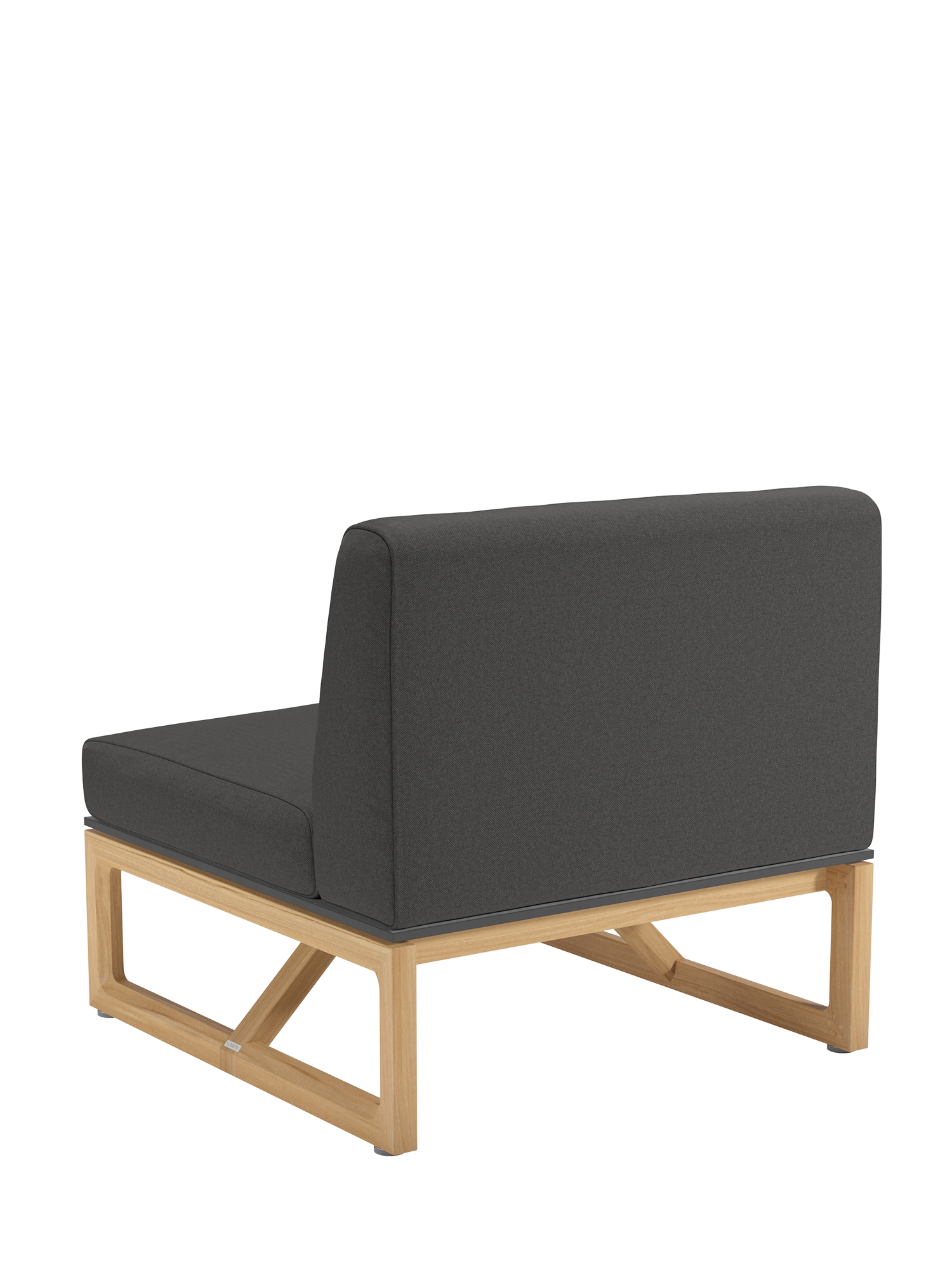 Ein markantes Teakgestell rahmt opulente Polster, die pure Behaglichkeit versprechen. Das flexible Element ohne Armlehnen eröffnet vielfältige Möglichkeiten und kann beliebig mit den anderen Polstermöbeln der Kollektion kombiniert werden. Das puristische Design verbindet das Mittelelement mit der Trey Sitzgruppe. Gemeinsam laden die zeitlosen Dining- und Loungemöbel zur ganzheitlichen Einrichtung von Gärten und Terrassen ein. Für Komfort, dem einfach nichts hinzuzufügen ist.
