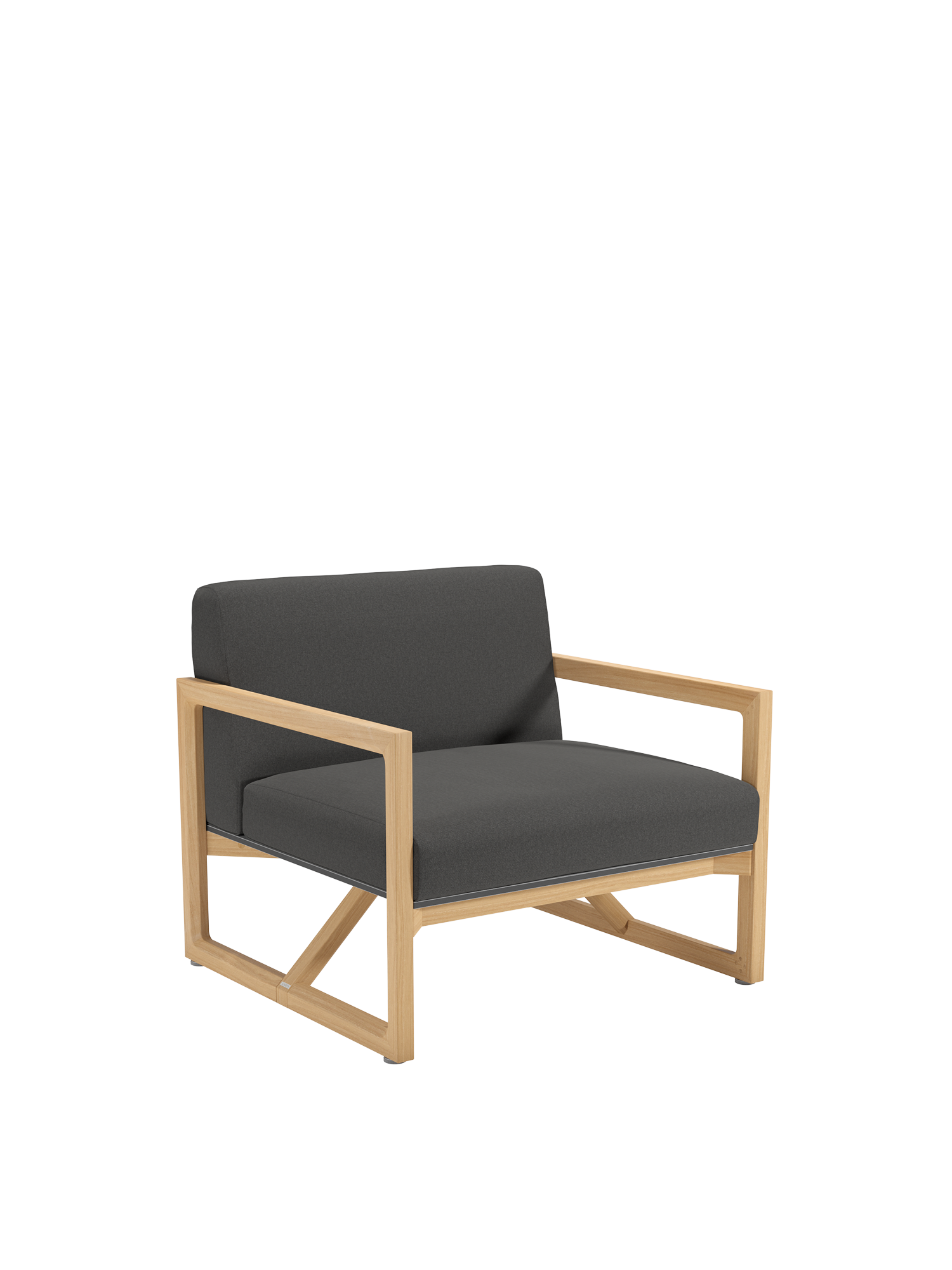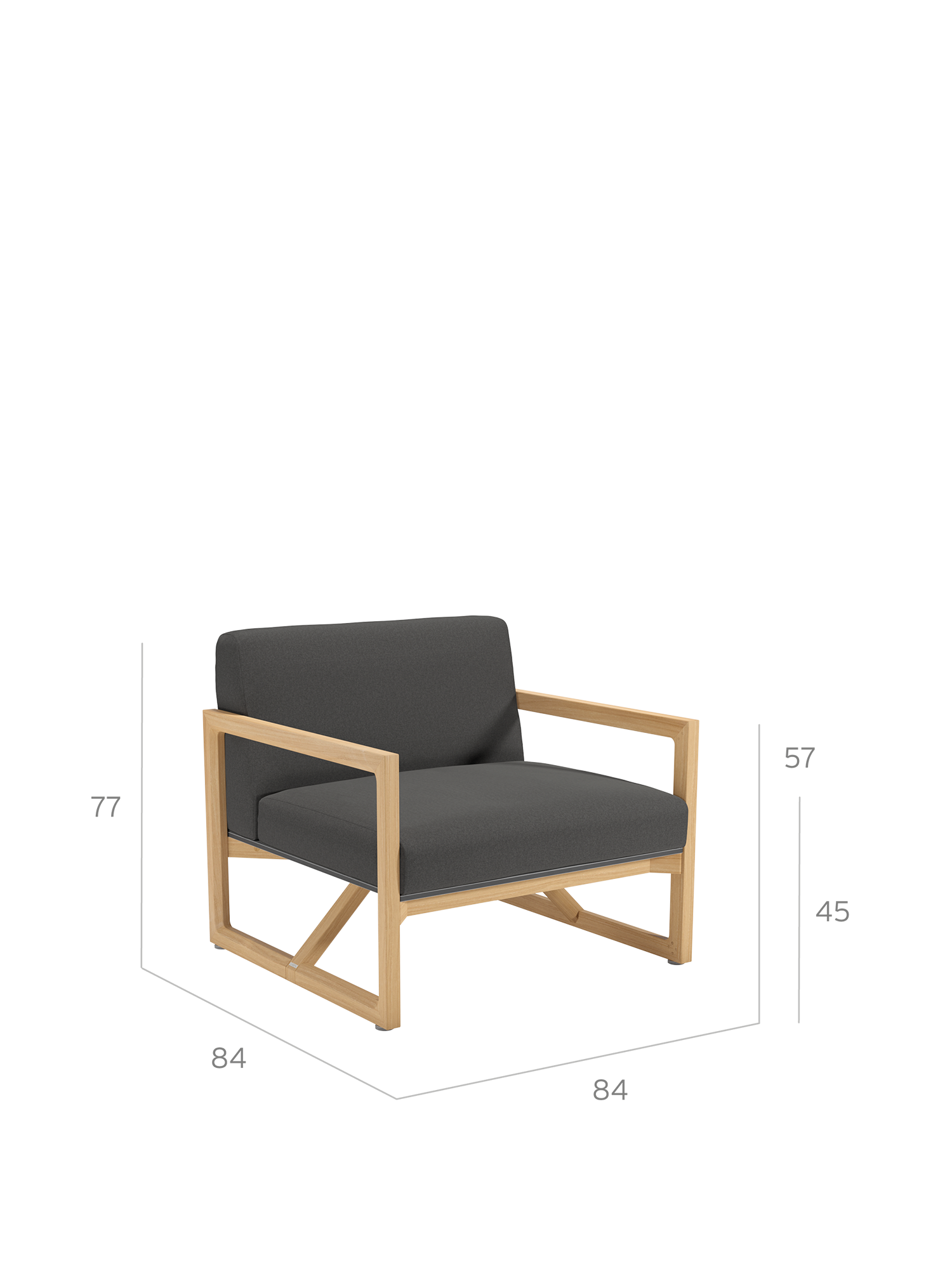 Ein markantes Teakgestell rahmt opulente Polster, die pure Behaglichkeit versprechen. Der einladende Sessel eröffnet großzügigen Gestaltungsspielraum und kann beliebig mit den anderen Polstermöbeln der Kollektion kombiniert werden. Das puristische Design verbindet den Sessel mit der Trey Sitzgruppe. Gemeinsam laden die zeitlosen Dining- und Loungemöbel zur ganzheitlichen Einrichtung von Gärten und Terrassen ein. Für Komfort, dem einfach nichts hinzuzufügen ist.