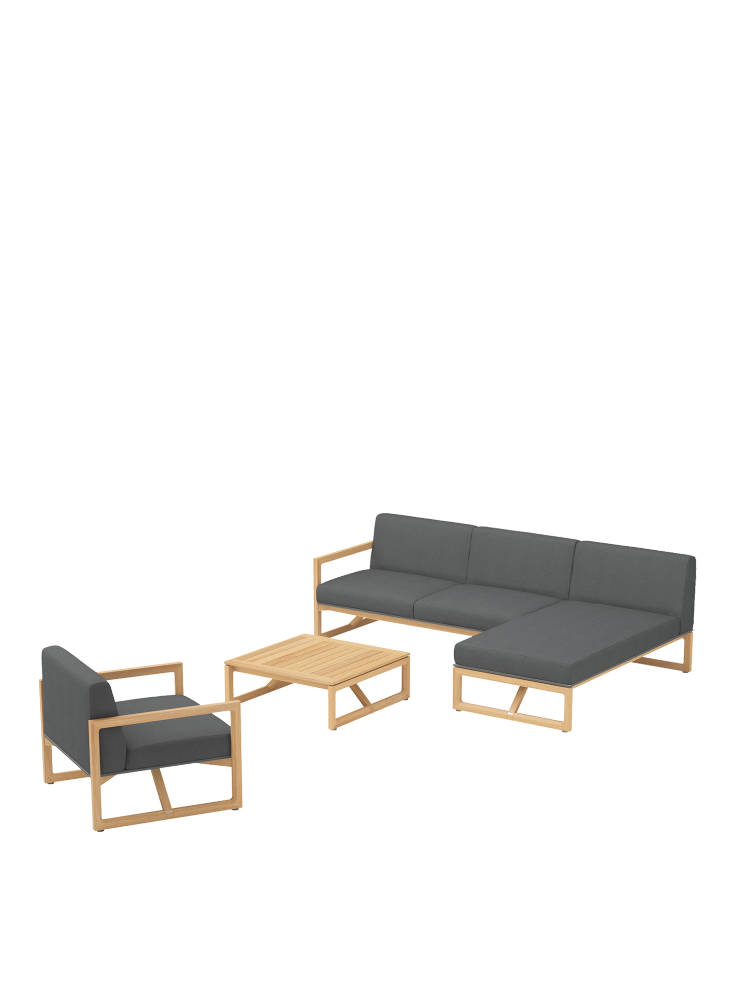 Auf den opulenten Polstern Trey Loungemöbel haben es Puristen besonders gemütlich. Im exklusiven Set kommen die frei kombinierbaren Module besonders zur Geltung. Sessel, Sofa und Chaiselongue eignen sich auch als Solitäre an ausgesuchten Orten.