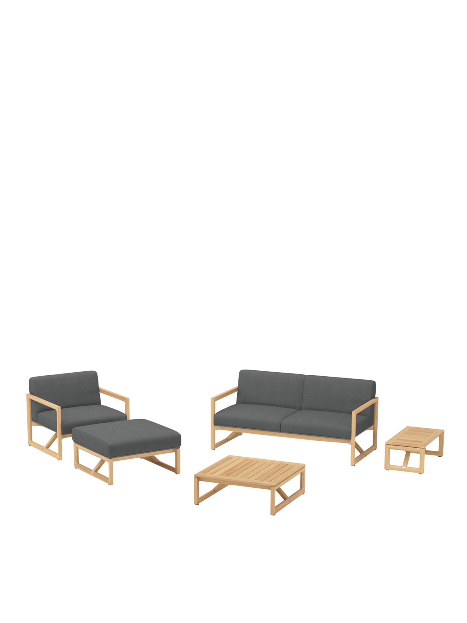 Auf den opulenten Polstern der Trey Loungemöbel haben es Puristen besonders gemütlich. Im exklusiven Set kommen die frei kombinierbaren Module besonders zur Geltung. Sessel und Sofa eignen sich auch als Solitäre an ausgesuchten Orten.