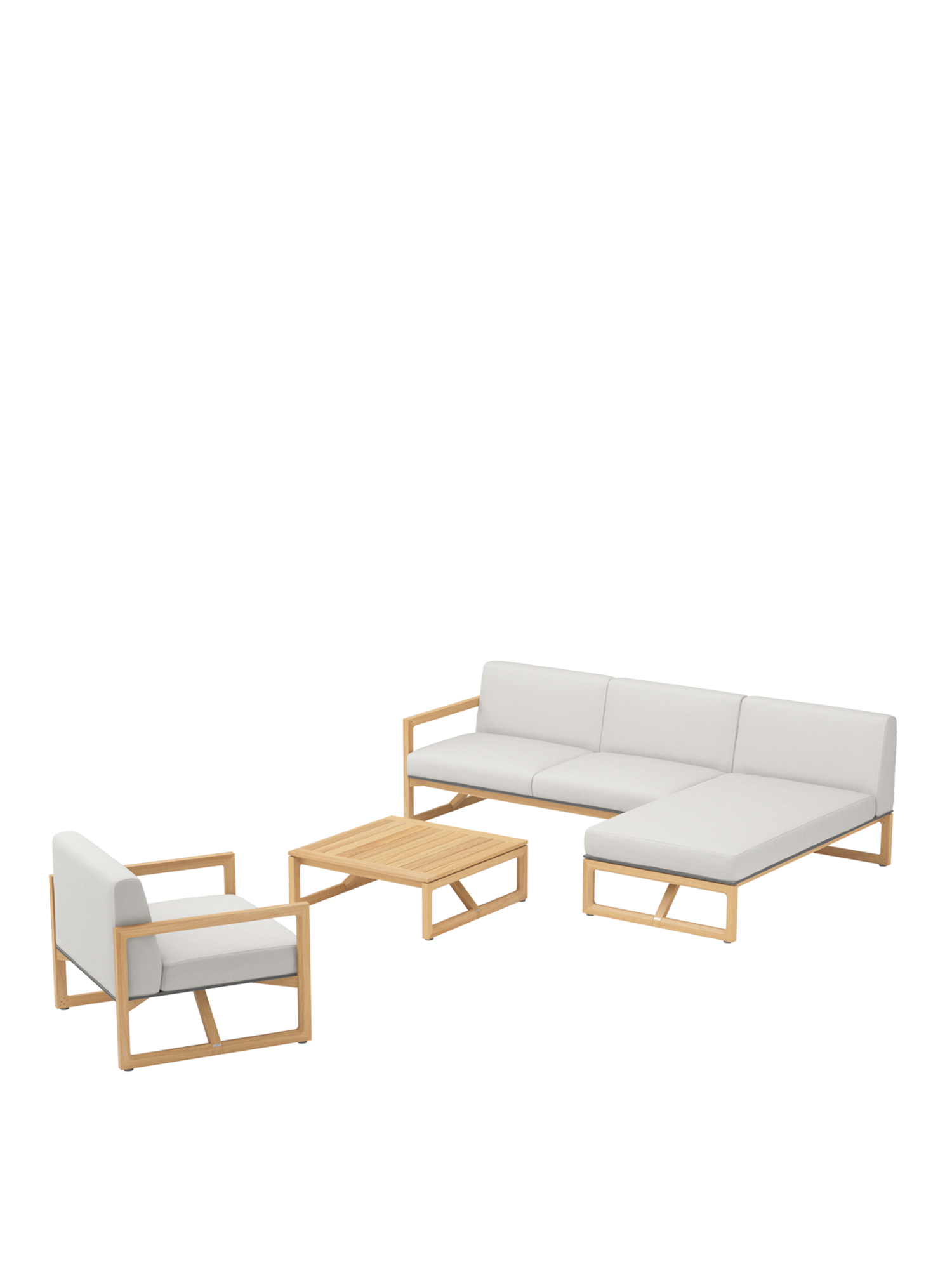 Auf den opulenten Polstern der Trey Loungemöbel haben es Puristen besonders gemütlich. Im exklusiven Set kommen die frei kombinierbaren Module besonders zur Geltung. Sessel, Sofa und Chaiselongue eignen sich auch als Solitäre an ausgesuchten Orten.