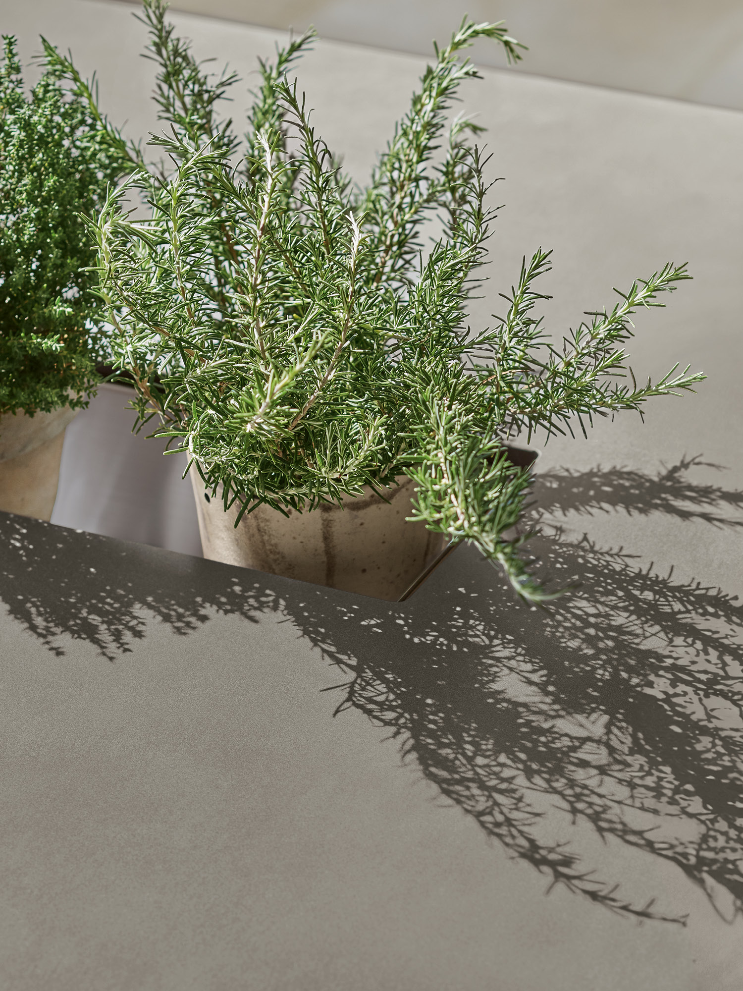 Am geräumigen Tisch lässt sich spielen, malen, basteln – und ruhig auch mal kleckern. Die leicht strukturierten und ganz natürlich wirkenden grauen Oberflächen aus Kunstharz machen alles mit. Sie sind wetter- und UV-beständig und kinderleicht zu reinigen. Mittig des Tisches befindet sich ein verschließbarer Edelstahlbehälter mit Ablaufschlitzen, in dem Kräuter, Flaschen, Malsachen oder Tischsets aufbewahrt werden können. Für Eiswürfel hingegen empfehlen wir den geschlossenen Behälter, den Sie unter dem Punkt "Zubehör" finden.