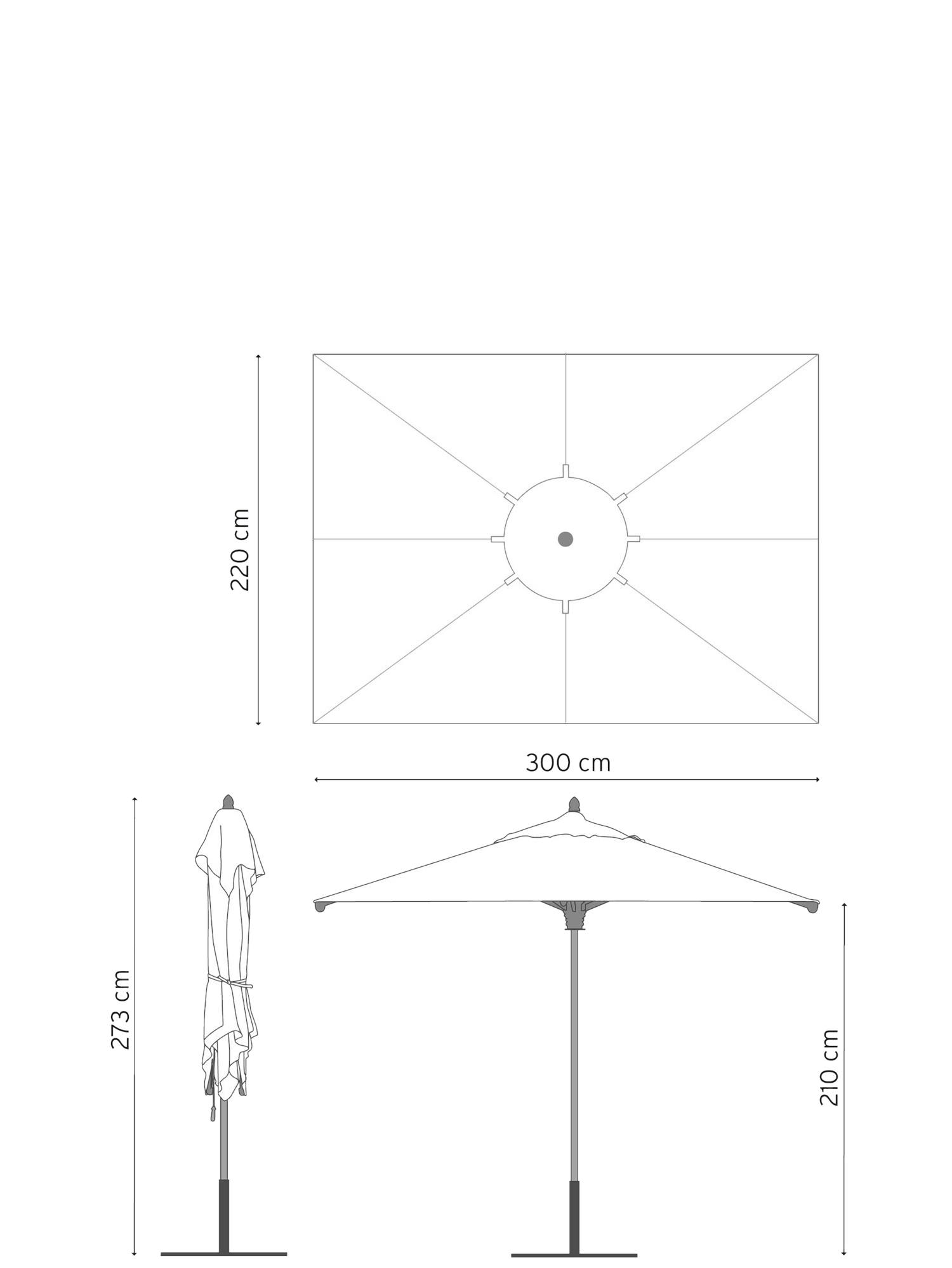 Umbria Sonnenschirm 220 x 300 cm rechteckig
