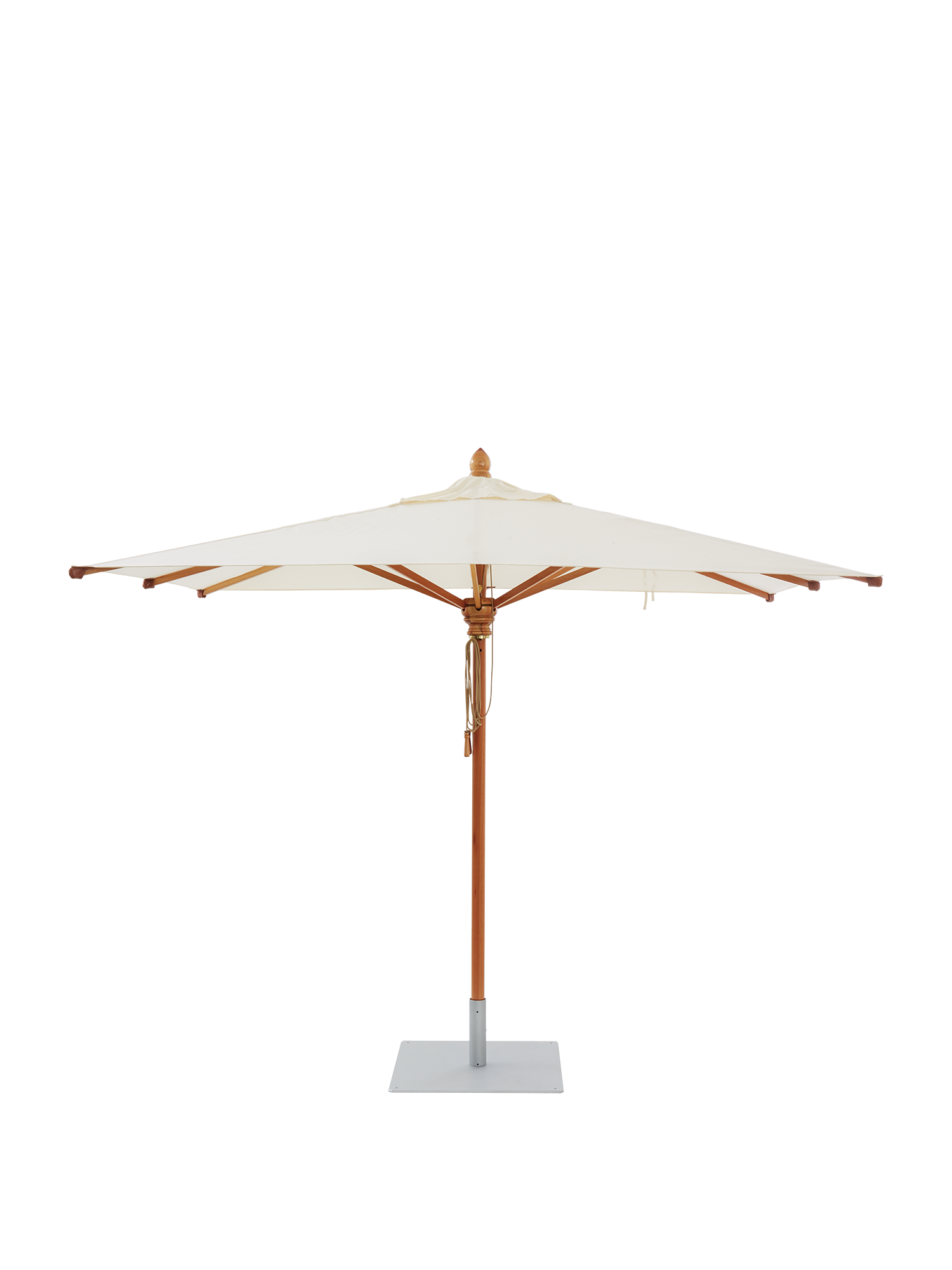 Umbria ist in drei Formen und verschiedenen Größen im Farbton Elfenbein erhältlich. Ob rund, quadratisch oder rechteckig - die Sonnenschirme eignen sich besonders für größere Tafelrunden. Umbria harmoniert sowohl mit klassischen als auch mit modernen Möbeln.
