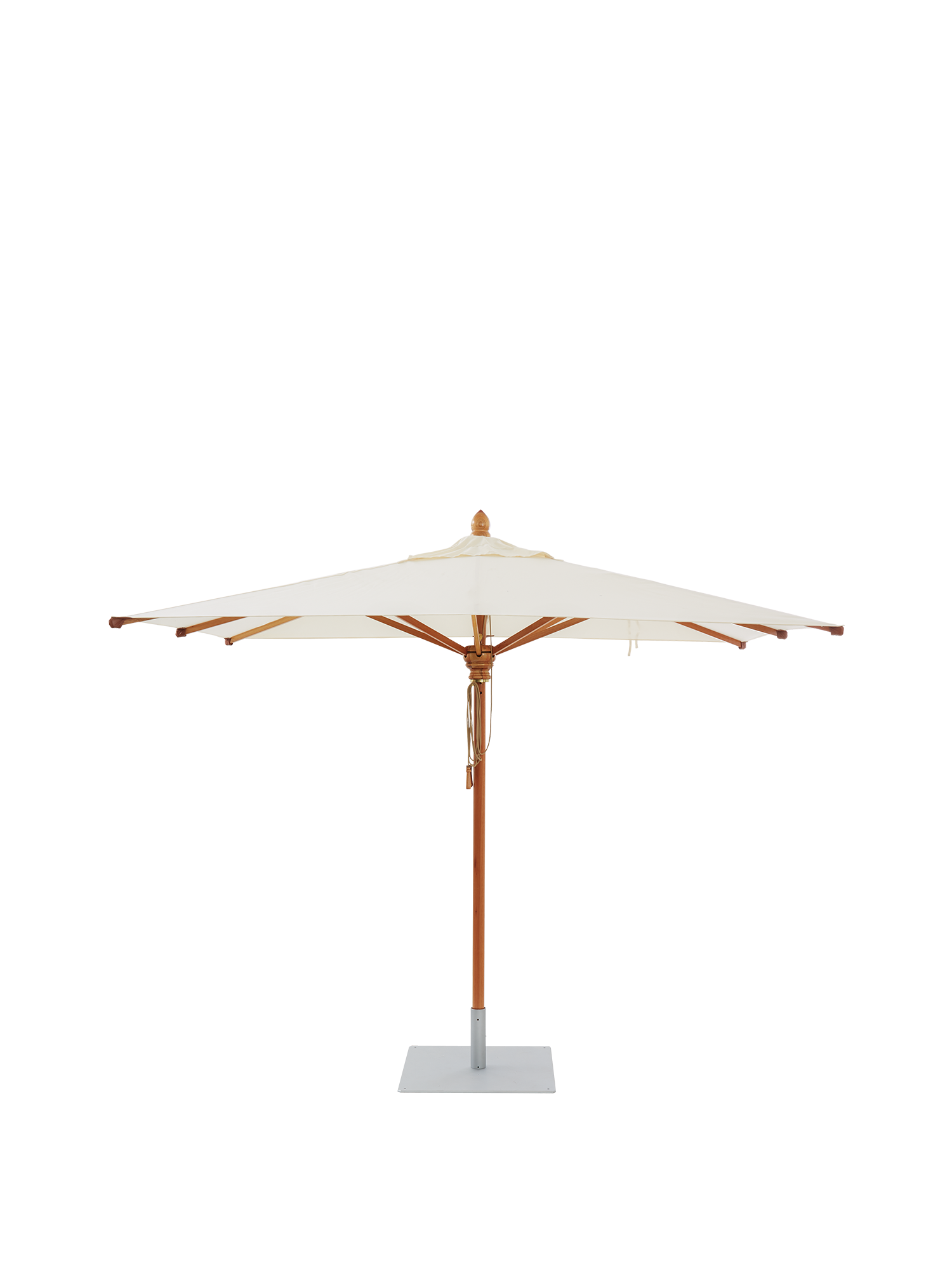 Umbria ist in sieben Größen und einer Vielzahl von Formen erhältlich. Ob rund, quadratisch oder rechteckig - die Schirme eignen sich besonders für größere Tafelrunden.