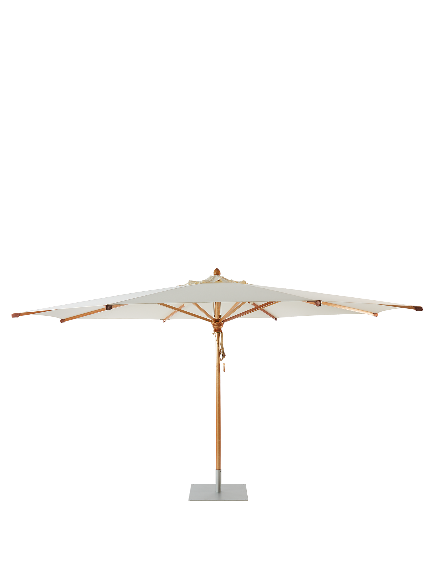 Umbria ist in sieben Größen und einer Vielzahl von Formen erhältlich. Ob rund, quadratisch oder rechteckig - die Schirme eignen sich besonders für größere Tafelrunden.
