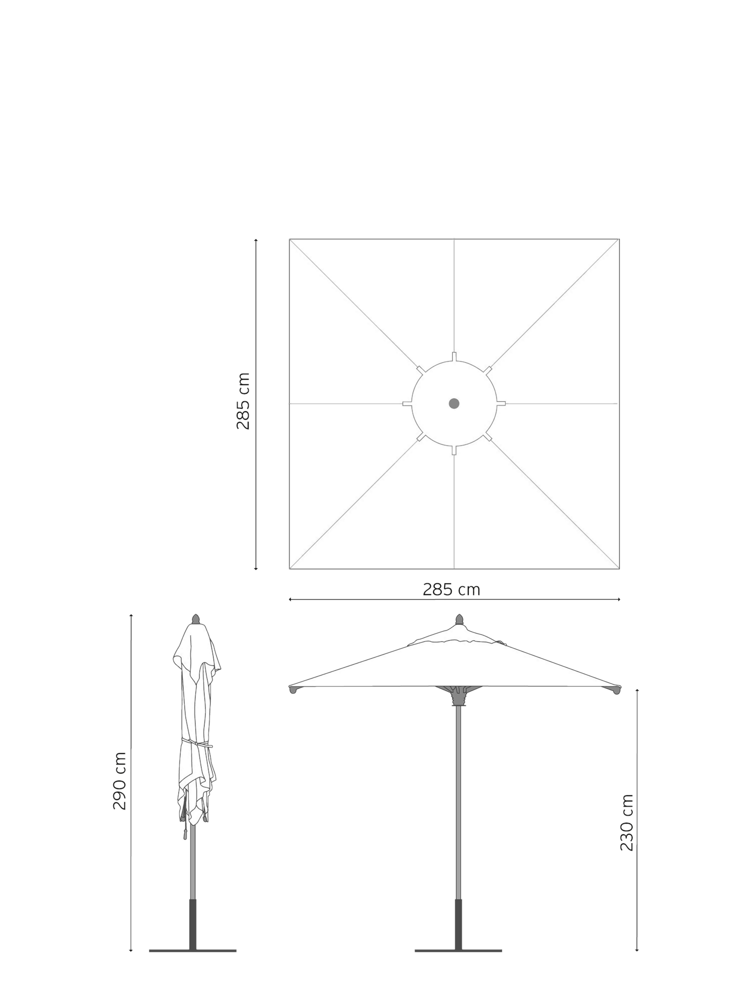Umbria Sonnenschirm Set 285 x 285 cm quadratisch, inkl. Schirmständer