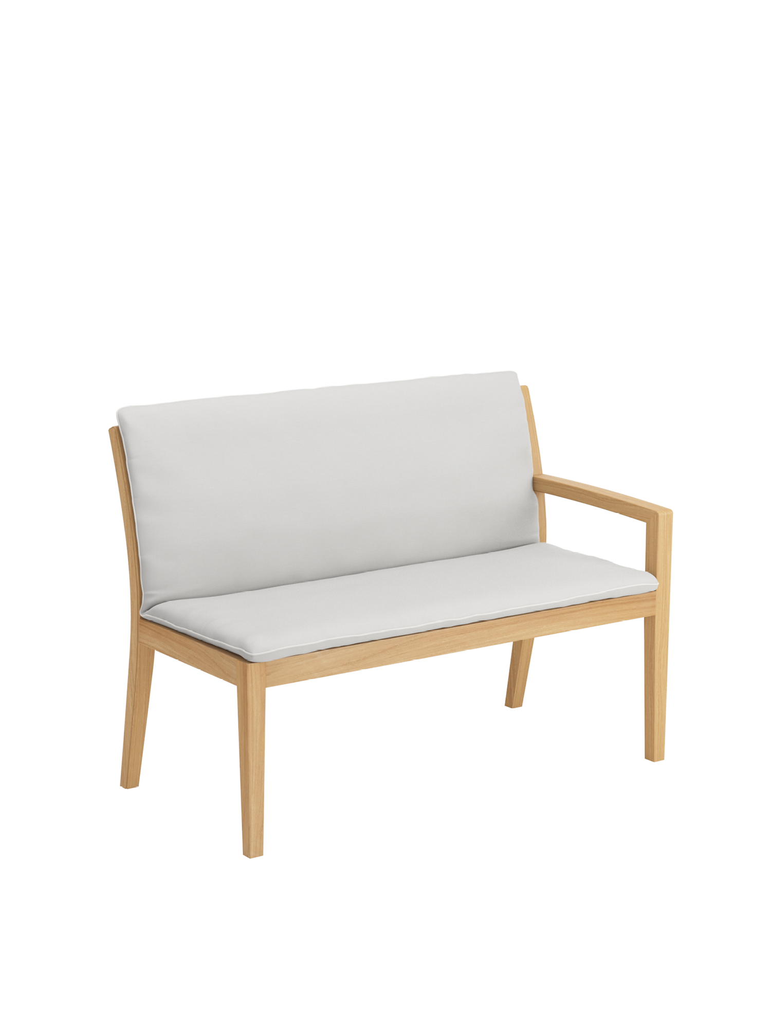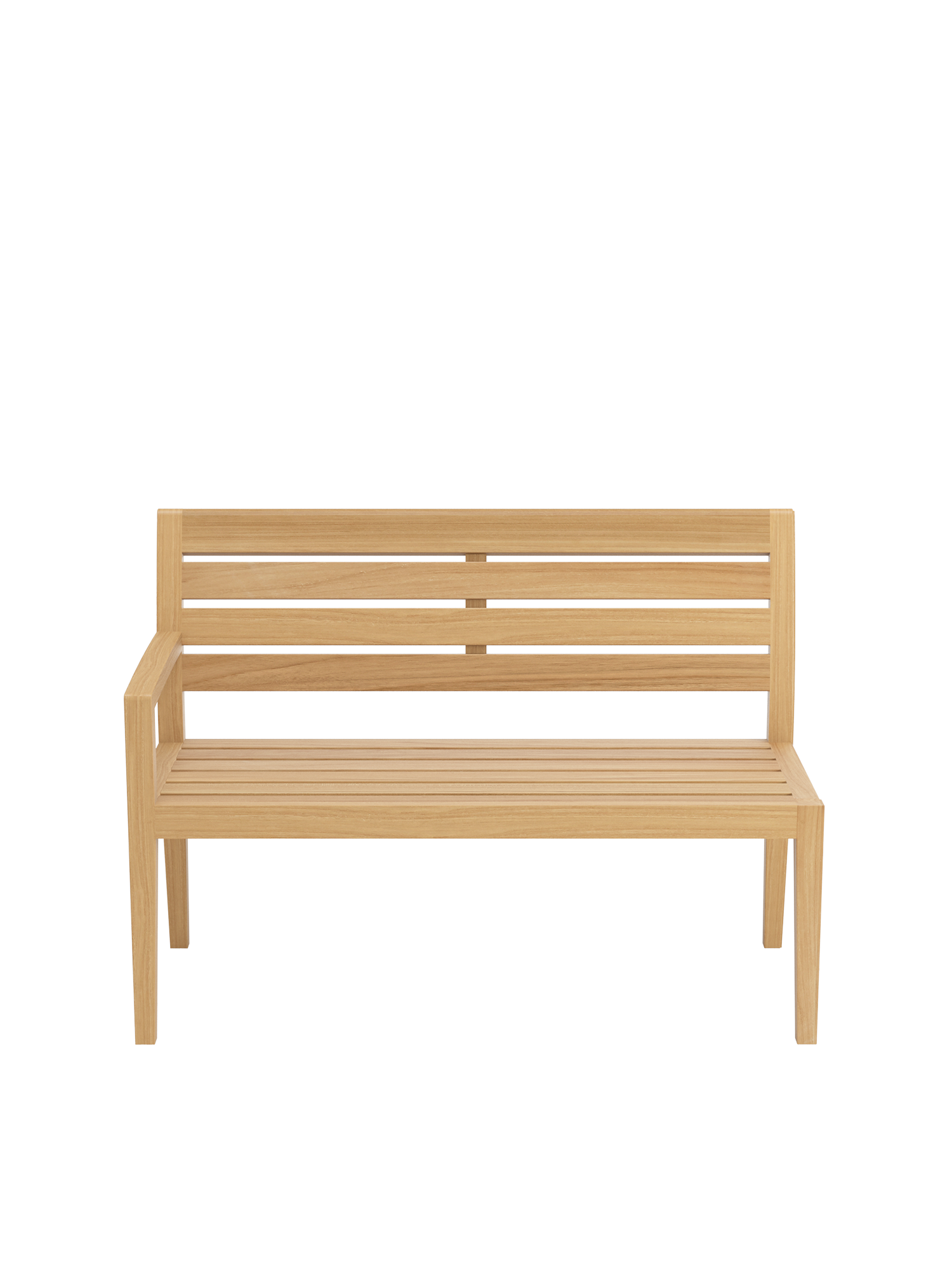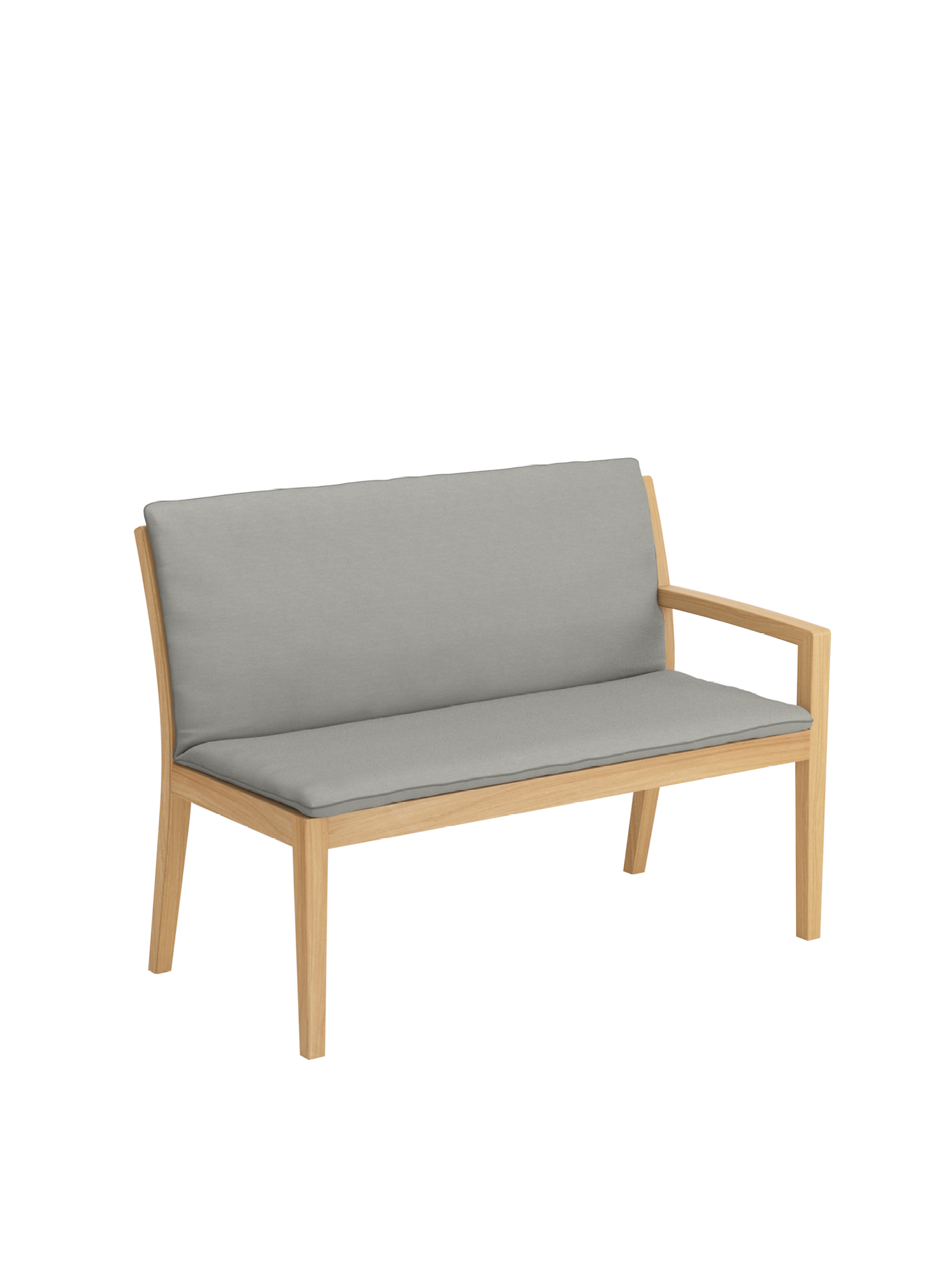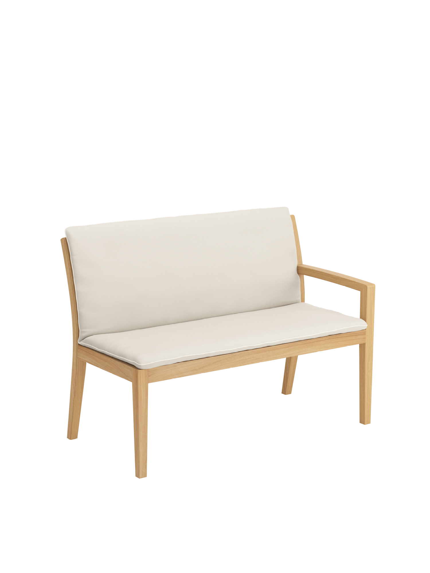 Die Valencia Bank mit einer Armlehne auf der rechten Seite ist Bestandteil eines modularen Systems und kann zu vielfältigen Eckbänken kombiniert werden.