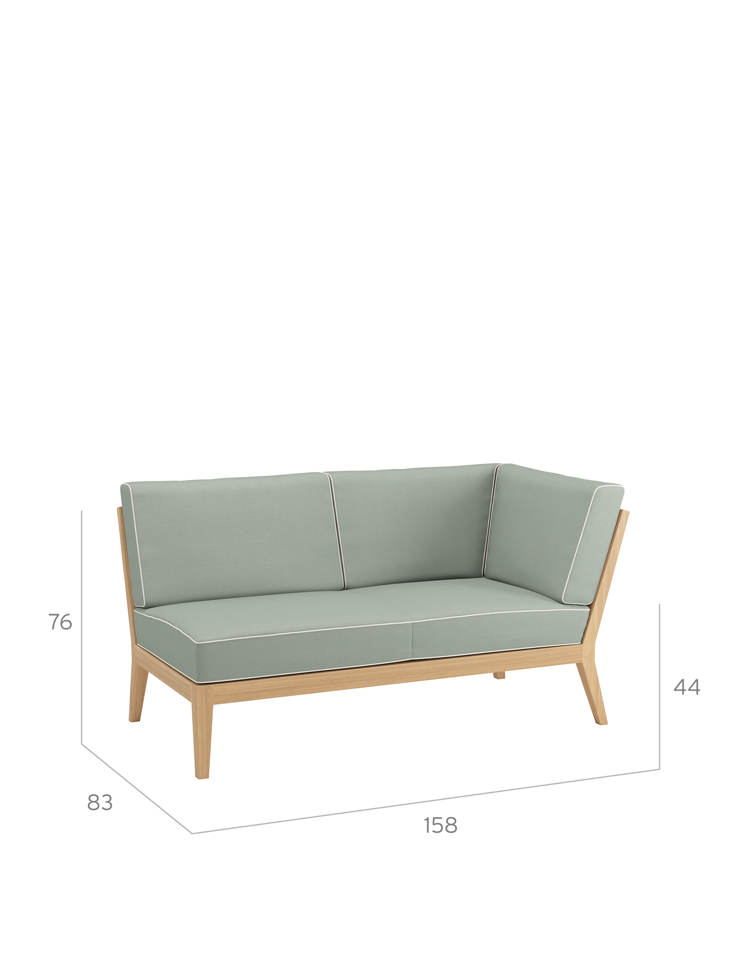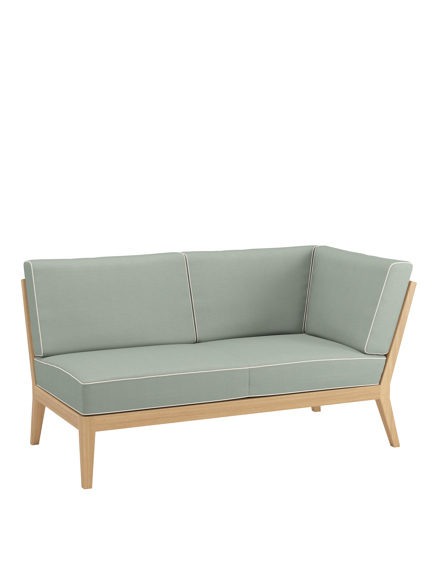 Am Ufer des Schwimmbeckens oder am Rand der Terrasse, auf einem Stadtbalkon oder mitten im Garten: Mit Elementen der Valencia Lounge findet ein Ruhepol in jeder luftigen Lage zur angemessenen Größe. Extra breit und besonders tief, bieten Chaiselongues, Mittelelemente und Eckmodule aus Teak mit ihren quer verlaufenden Sitz- und Rückenlehnen und ausgestellten Beinen viel Raum zum Anlehnen. Dicke, von Kedern gerahmte Polster und Federkissen in frischen Farben setzen dazu sommerliche Akzente.