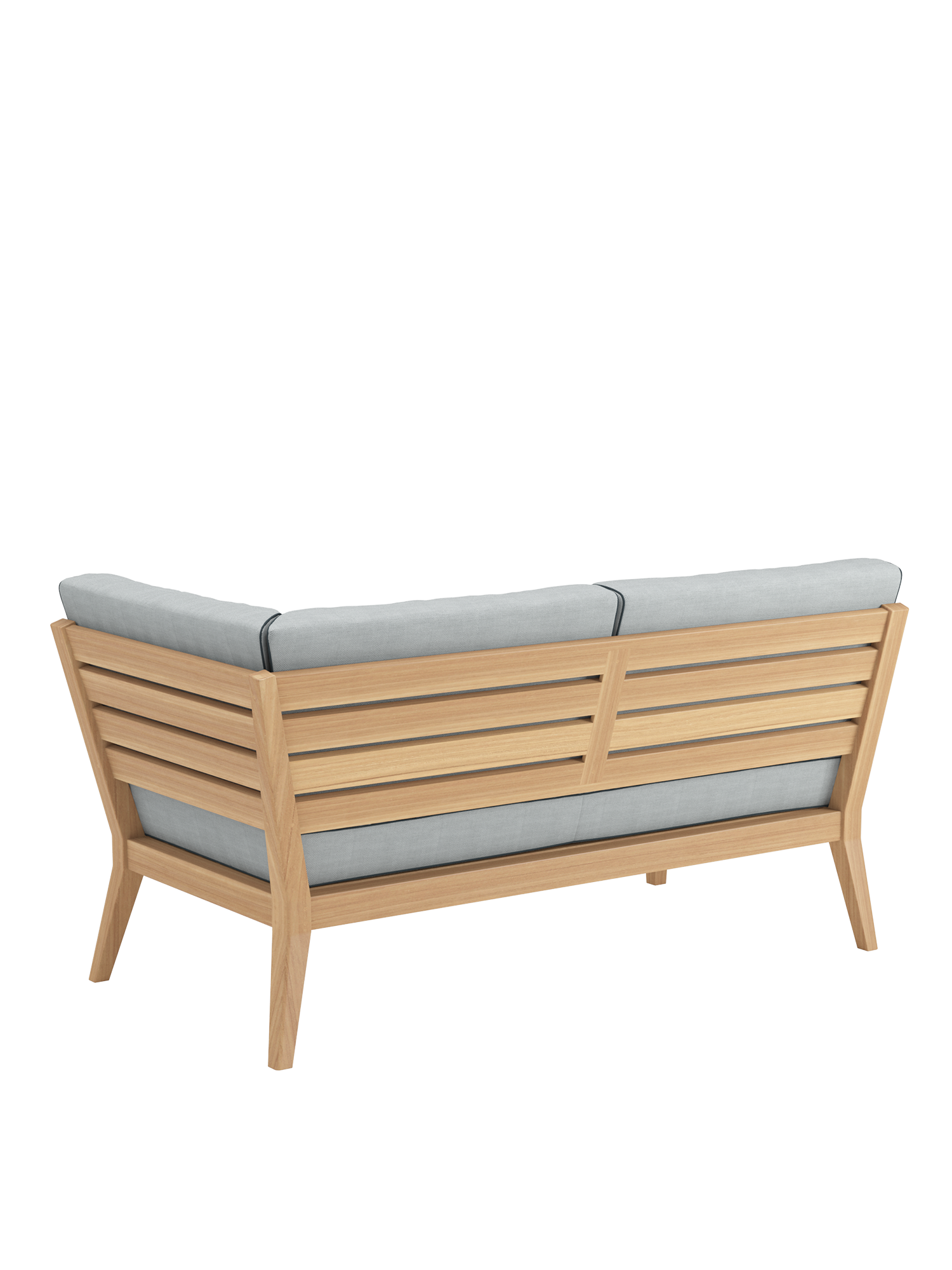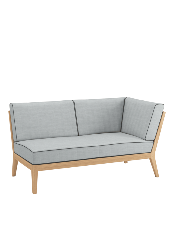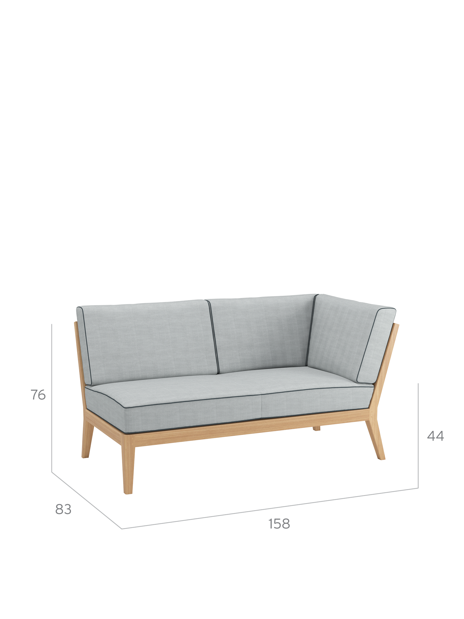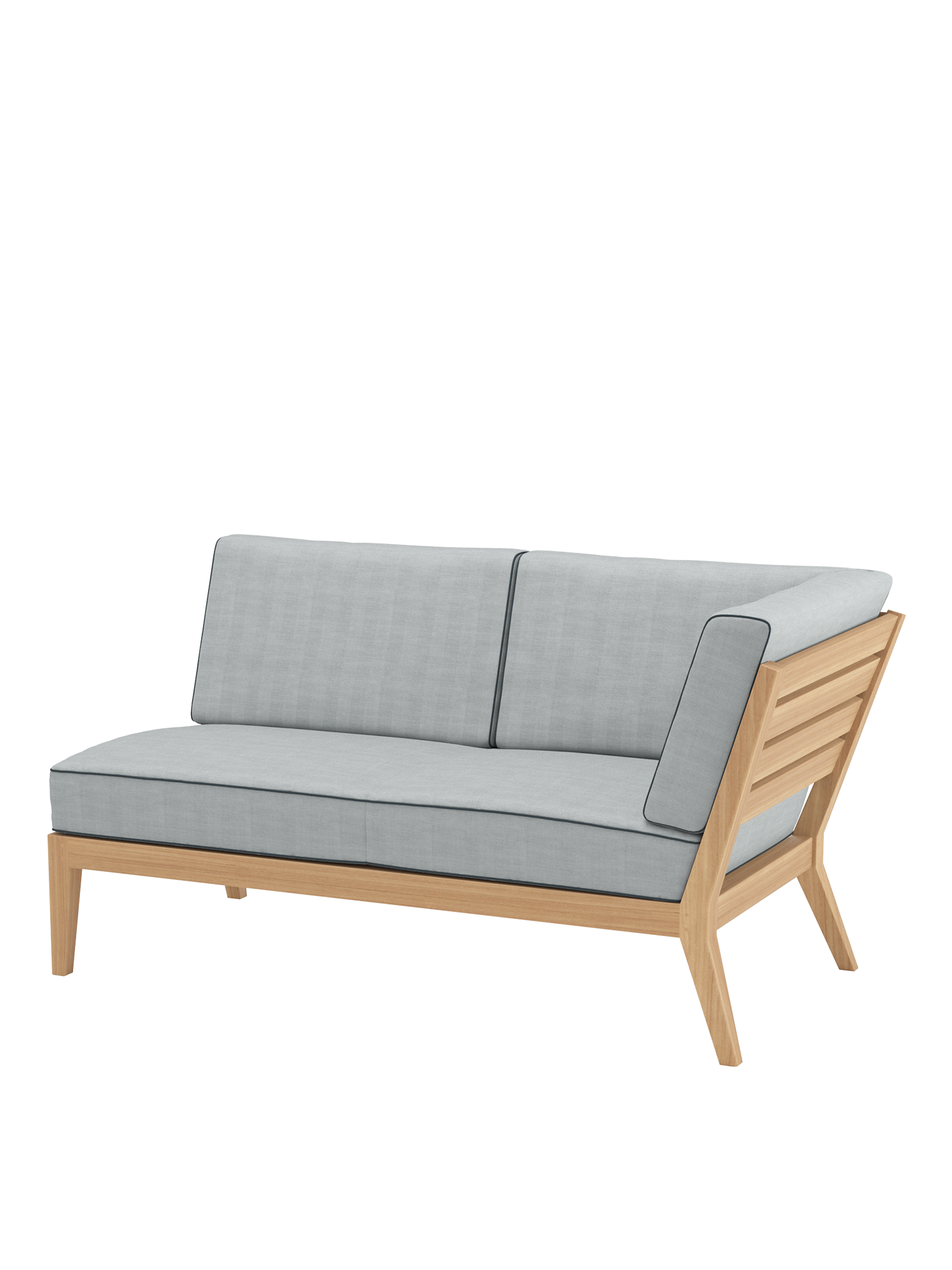 Am Ufer des Schwimmbeckens oder am Rand der Terrasse, auf einem Stadtbalkon oder mitten im Garten: Mit Elementen der Valencia Lounge findet ein Ruhepol in jeder luftigen Lage zur angemessenen Größe. Extra breit und besonders tief, bieten Chaiselongues, Mittelelemente und Eckmodule aus Teak mit ihren quer verlaufenden Sitz- und Rückenlehnen und ausgestellten Beinen viel Raum zum Anlehnen. Dicke, von Kedern gerahmte Polster und Federkissen in frischen Farben setzen dazu sommerliche Akzente.