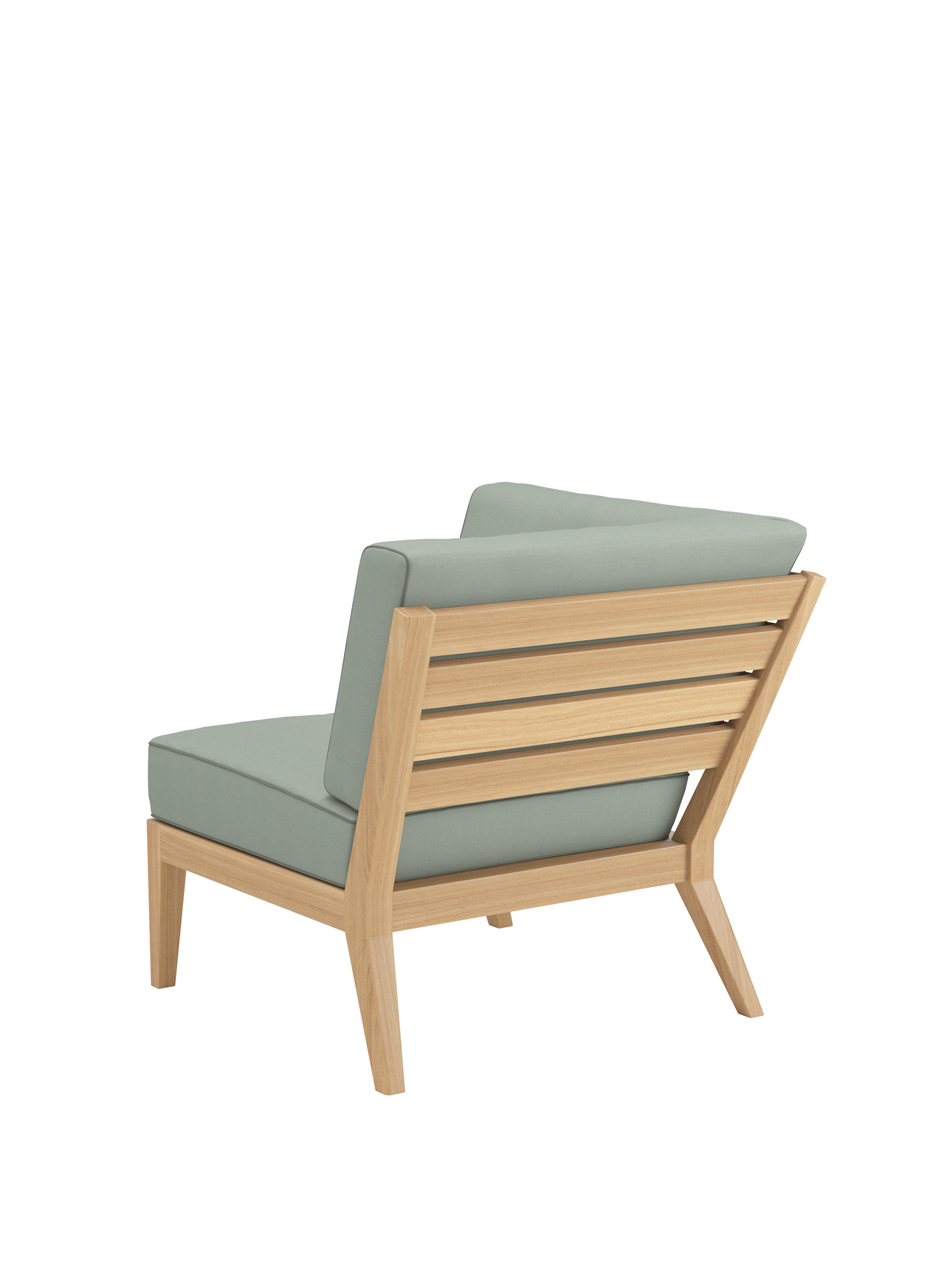 Am Ufer des Schwimmbeckens oder am Rand der Terrasse, auf einem Stadtbalkon oder mitten im Garten: Mit Elementen der Valencia Lounge findet ein Ruhepol in jeder luftigen Lage zur angemessenen Größe. Extra breit und besonders tief, bieten Chaiselongues, Mittelelemente und Eckmodule aus Teak mit ihren quer verlaufenden Sitz- und Rückenlehnen und ausgestellten Beinen viel Raum zum Anlehnen. Dicke, von Kedern gerahmte Polster und Federkissen in frischen Farben setzen dazu sommerliche Akzente.