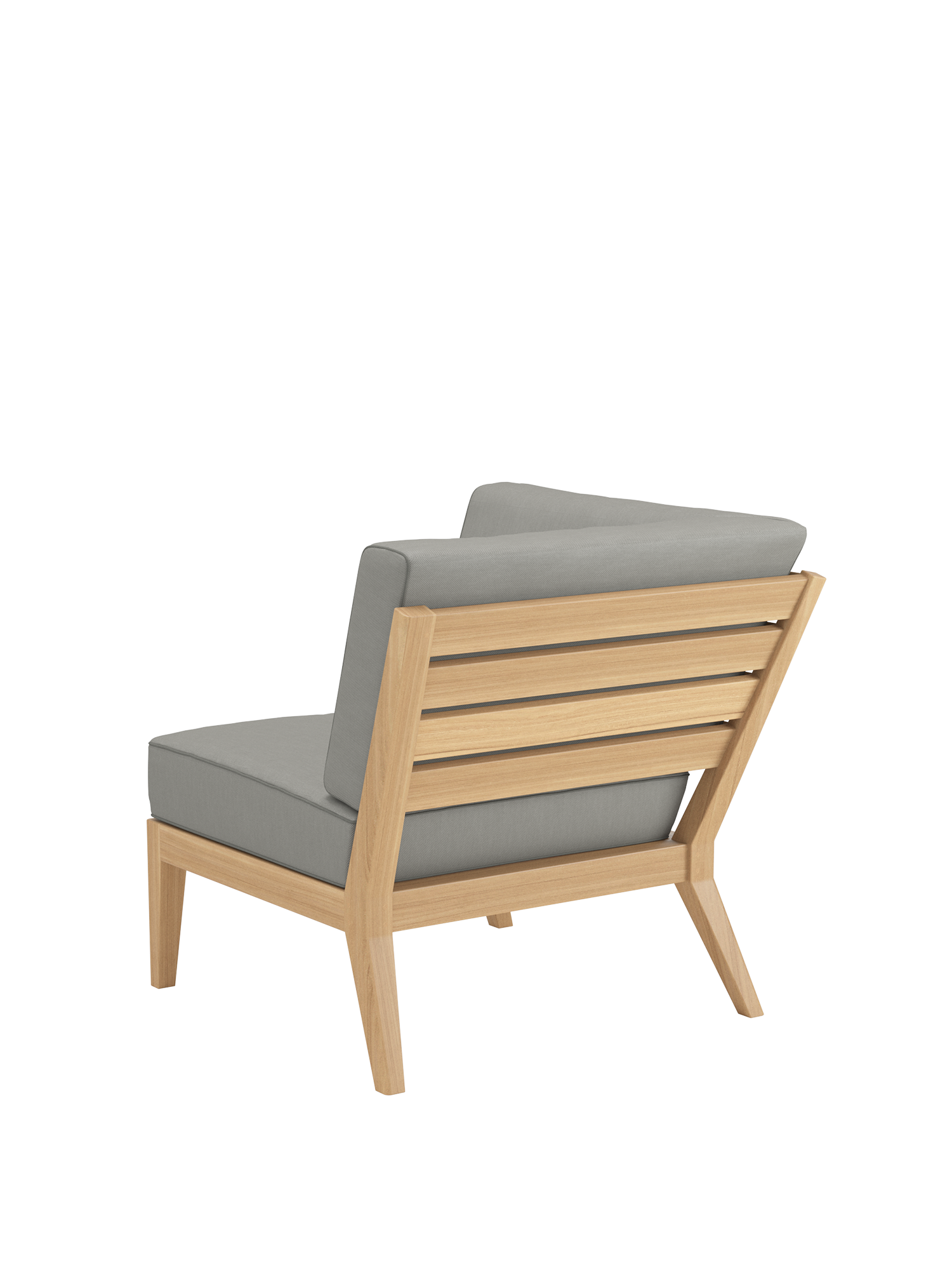 Am Ufer des Schwimmbeckens oder am Rand der Terrasse, auf einem Stadtbalkon oder mitten im Garten: Mit Elementen der Valencia Lounge findet ein Ruhepol in jeder luftigen Lage zur angemessenen Größe. Extra breit und besonders tief, bieten Chaiselongues, Mittelelemente und Eckmodule aus Teak mit ihren quer verlaufenden Sitz- und Rückenlehnen und ausgestellten Beinen viel Raum zum Anlehnen. Dicke, von Kedern gerahmte Polster und Federkissen in frischen Farben setzen dazu sommerliche Akzente.