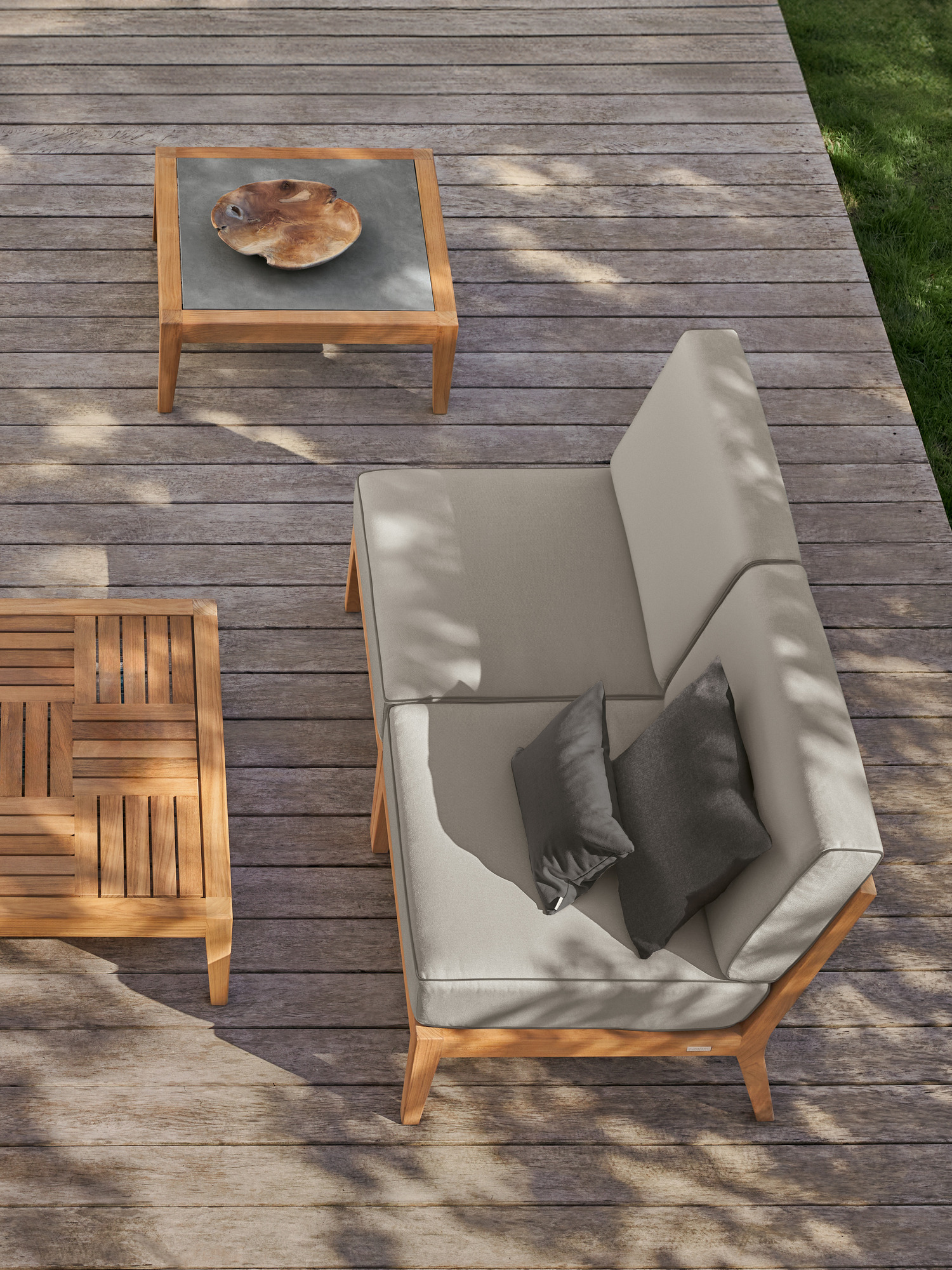Am Ufer des Schwimmbeckens oder am Rand der Terrasse, auf einem Stadtbalkon oder mitten im Garten: Mit Elementen der Valencia Lounge findet ein Ruhepol in jeder luftigen Lage zur angemessenen Größe. Extra breit und besonders tief, bieten Chaiselongues, Mittelelemente und Eckmodule aus Teak mit ihren quer verlaufenden Sitz- und Rückenlehnen und ausgestellten Beinen viel Raum zum Anlehnen. Dicke, von Kedern gerahmte Polster und Federkissen in frischen Farben setzen dazu sommerliche Akzente.