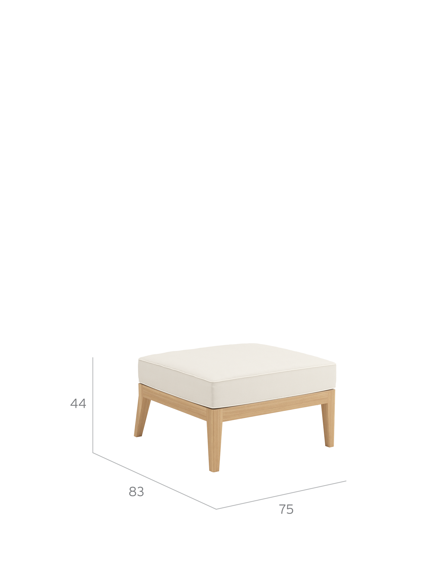 Das Lounge Element ohne Lehne, mit gleichem Maß und ausgestellten hinteren Beinen lässt sich lückenlos einreihen – wahlweise als Mittel- oder Endelement.