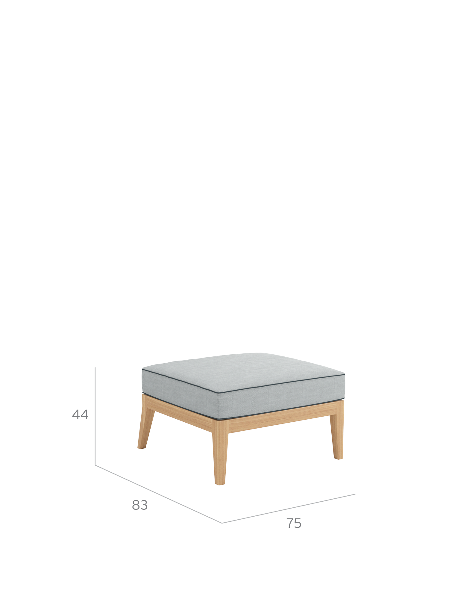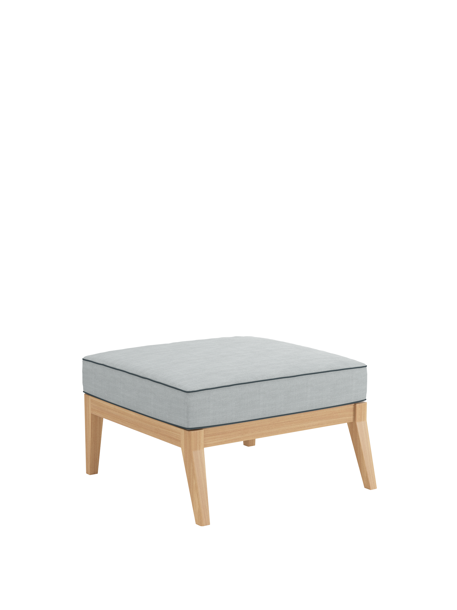 Das Lounge Element ohne Lehne, mit gleichem Maß und ausgestellten hinteren Beinen lässt sich lückenlos einreihen – wahlweise als Mittel- oder Endelement.