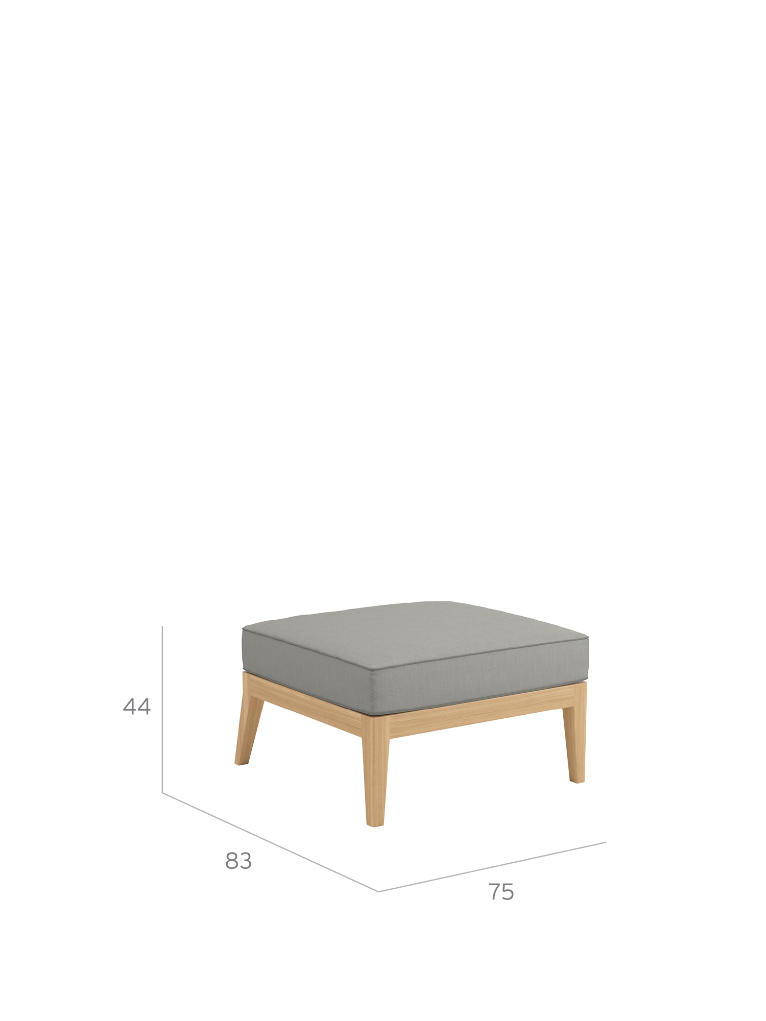 Das Lounge Element ohne Lehne, mit gleichem Maß und ausgestellten hinteren Beinen lässt sich lückenlos einreihen – wahlweise als Mittel- oder Endelement.